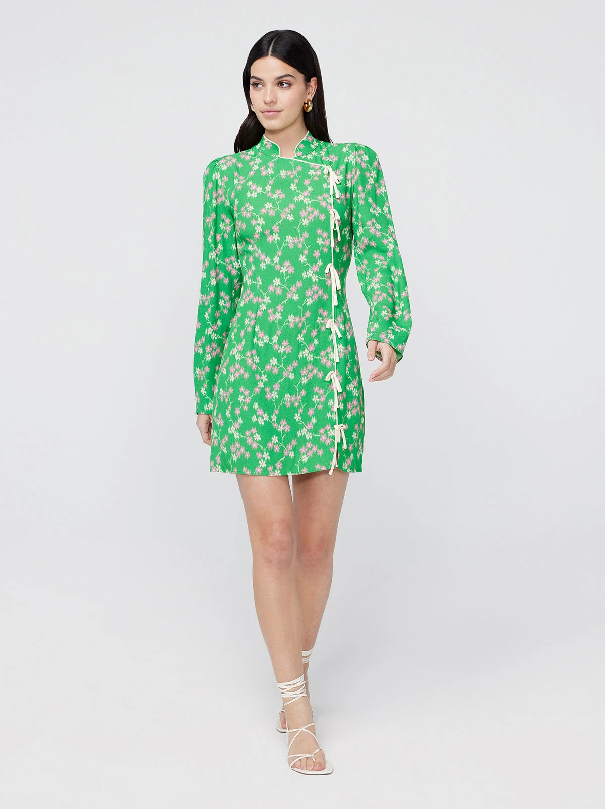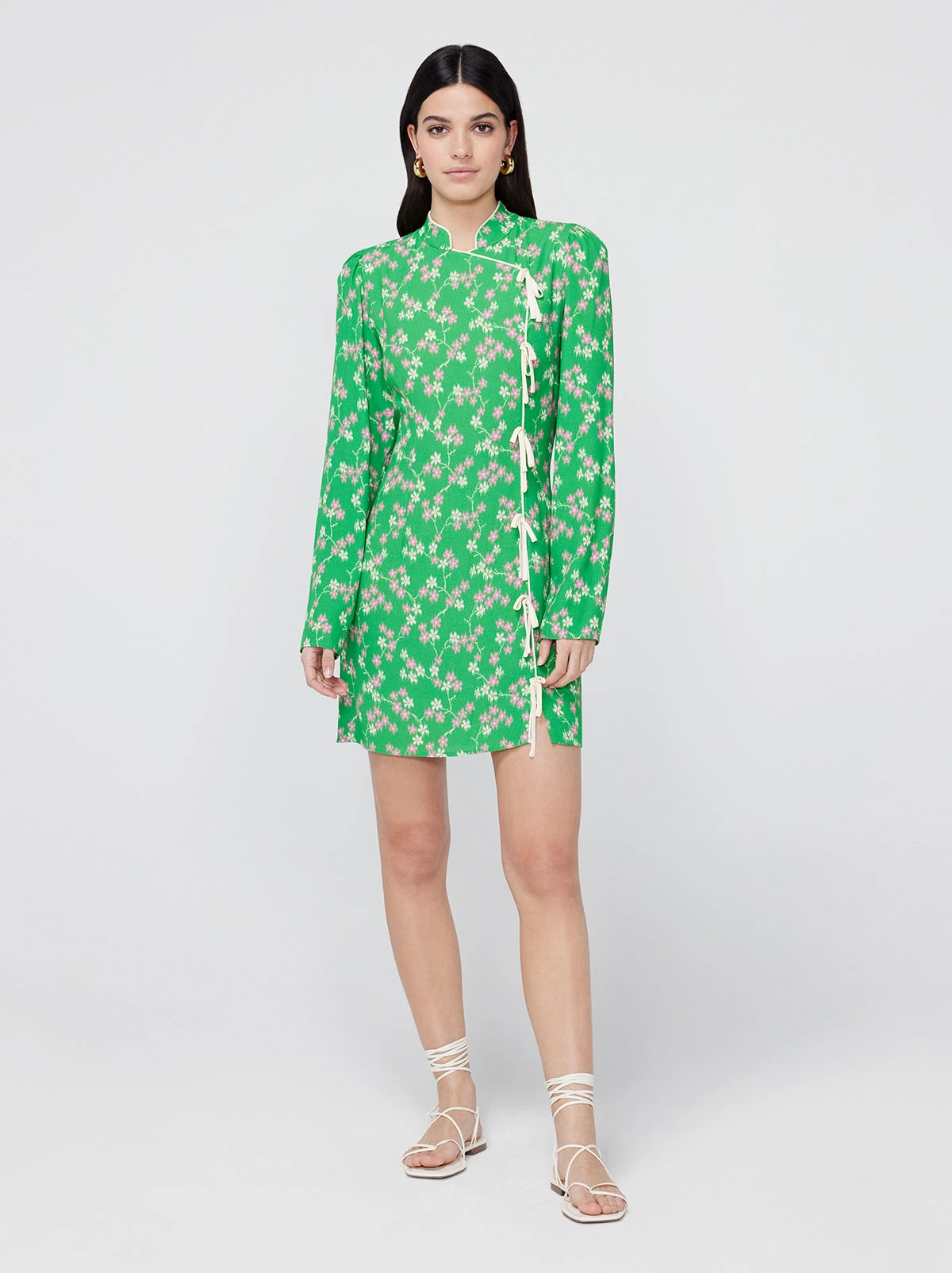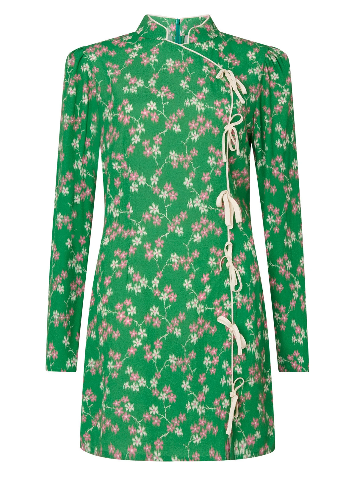 Short and sweet. Allegra is a slim-fit, Cheongsam-inspired mini dress in spring fresh green floral. A long-sleeved sister to our ever-popular Harlow dress, Allegra will take you through the fresher temps of ‘le printemps’ with ease.