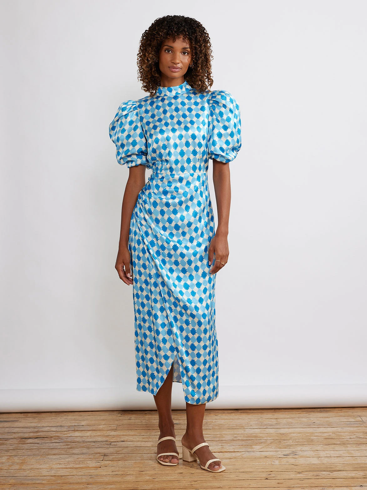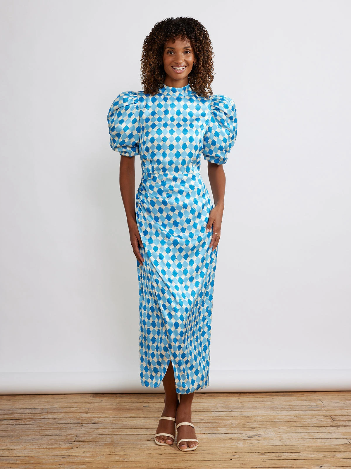 Spring soire? Enter Annabelle. Her retro-inspired puff tulle sleeves and high neckline are balanced with an asymmetric, gathered (and universally flattering) skirt. Ready to RSVP?
