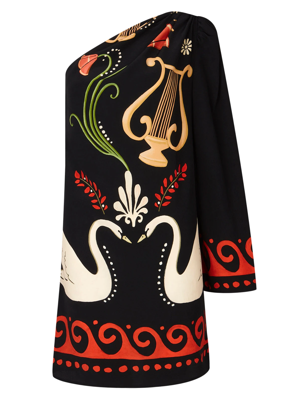 Antonia Black Cygnus And Lyra Print Mini Dress