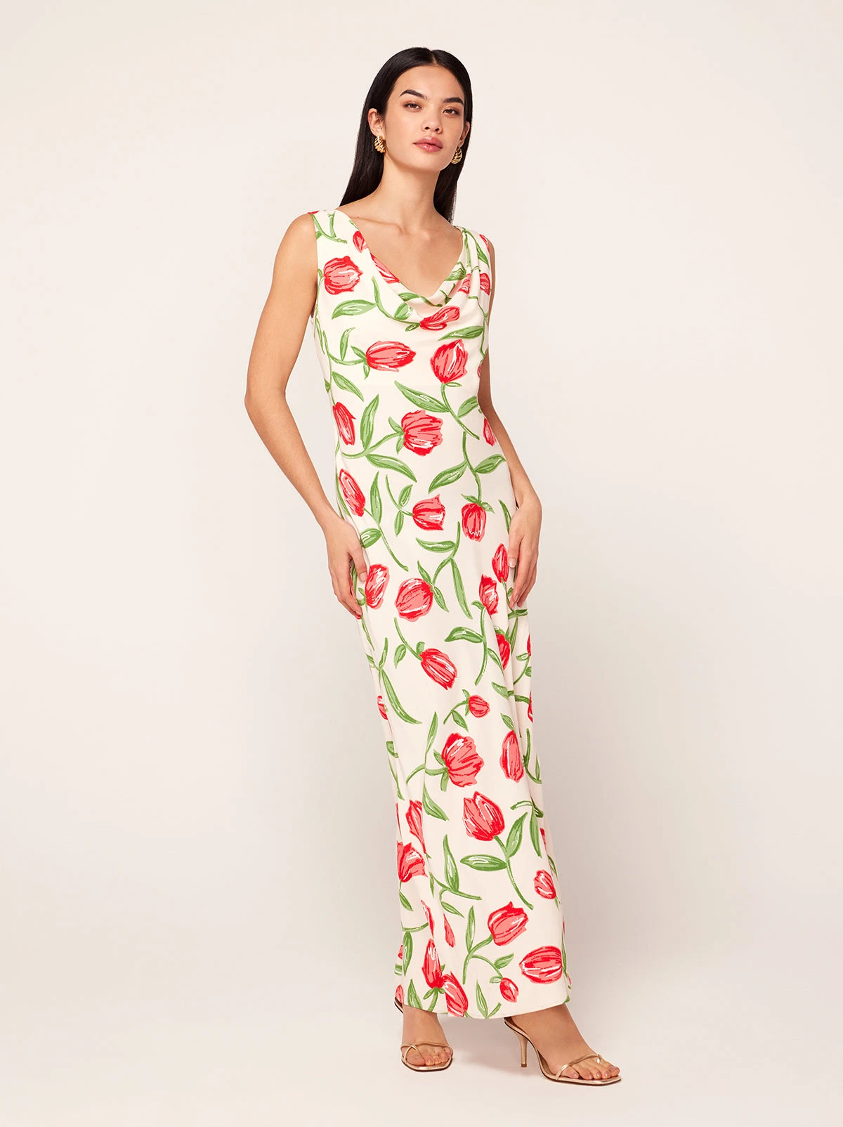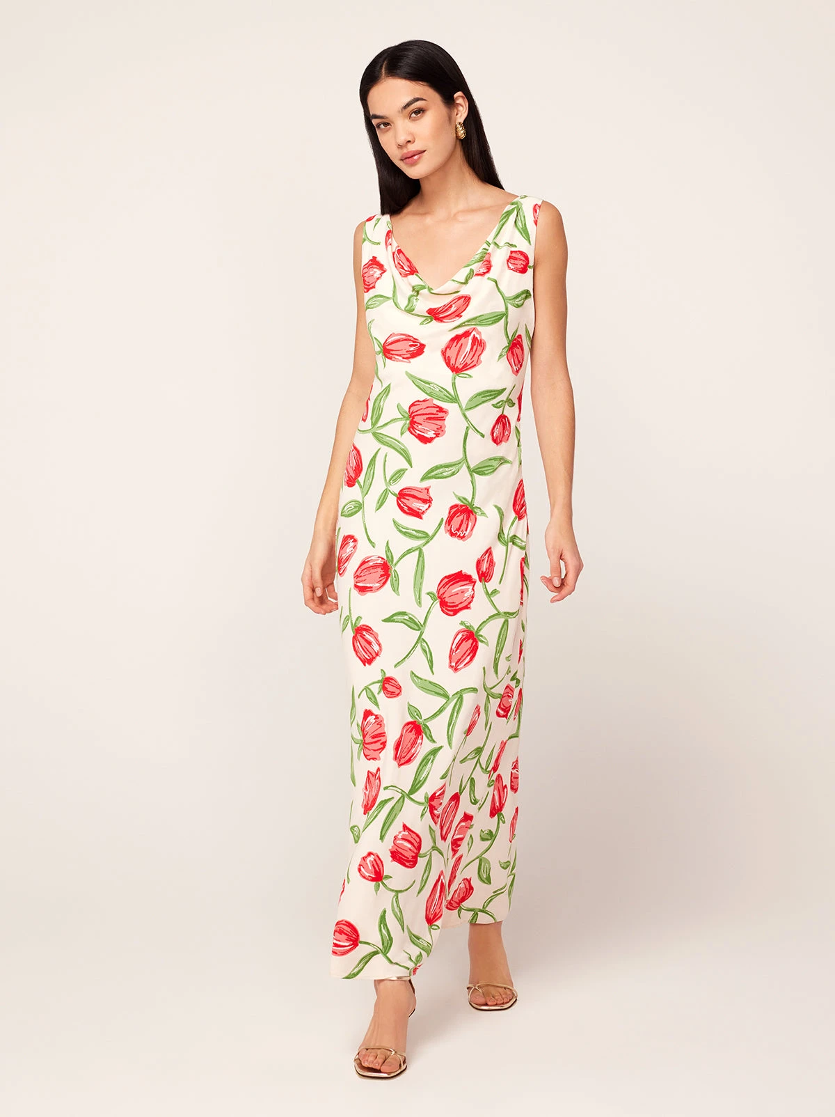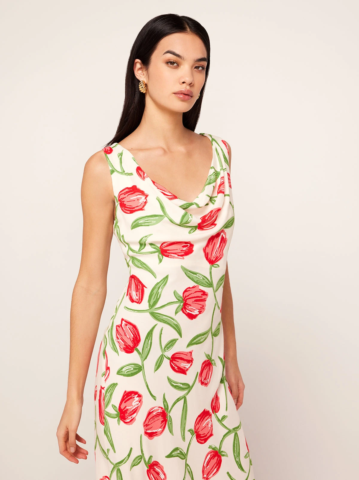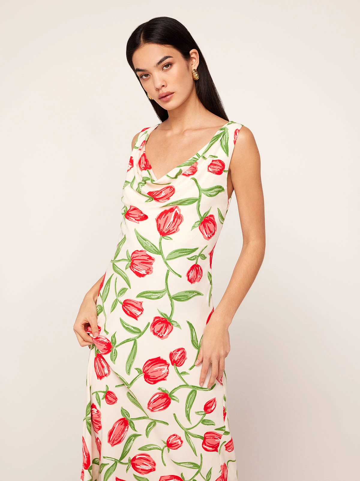 Gracefully does it. Araminta’s flattering and feminine cowl neck provides an easy ’90s-inspired feel. Her fully lined bias-cut midi skirt holds plenty of swish. She’s perfect for every event in your calendar this spring.