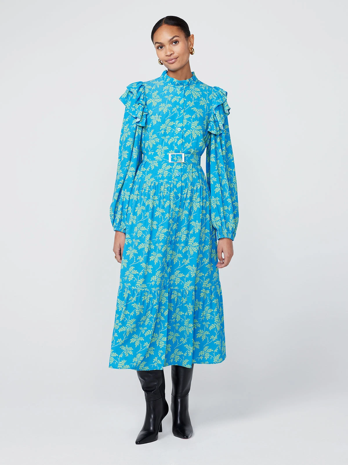 Girl, put your records on. Aster is a retro (and Lori) inspired shirt dress with volume puff sleeves, frill collar neckline and shoulder details. You just know she’ll look great with your favourite boots.