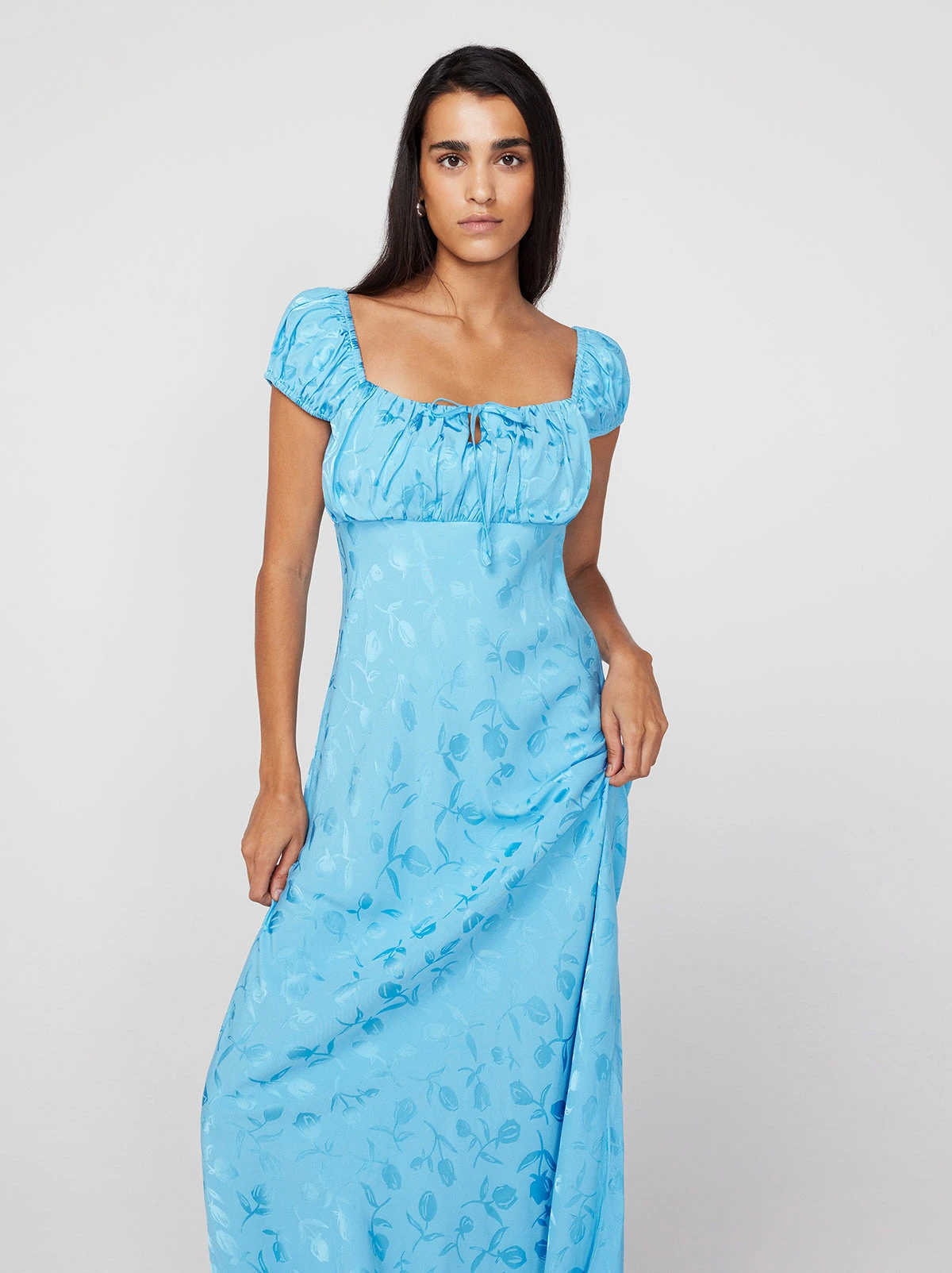 Bess Sky Blue Tulip Jacquard Maxi Dress