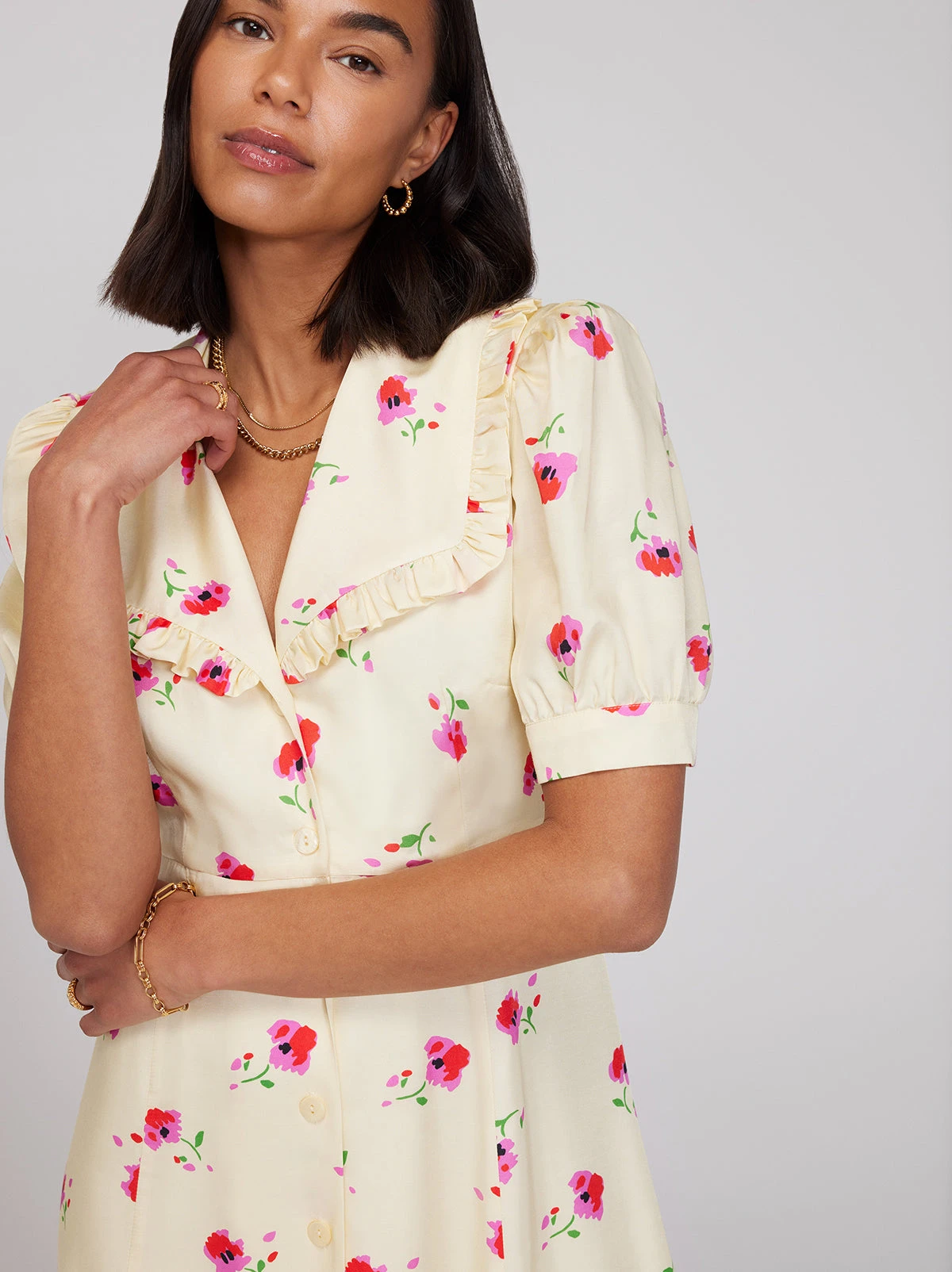 The ultimate holiday dress. Bethany’s oversized collar and puff detail sleeves keep things kitsch and her deep-V neckline adds a flirty twist. Wear her with heels to dinner on Saturday and trainers for a stroll along the harbour on Sunday.