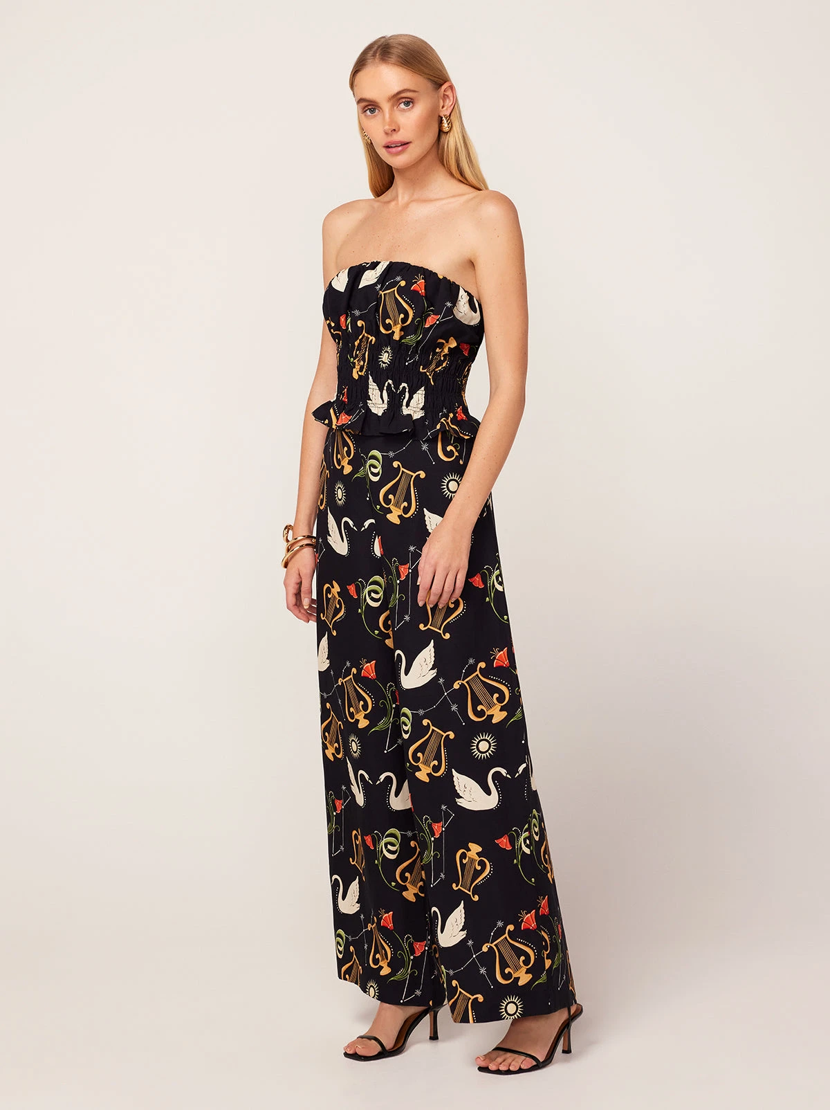Cosima Black Cygnus And Lyra Print Trousers