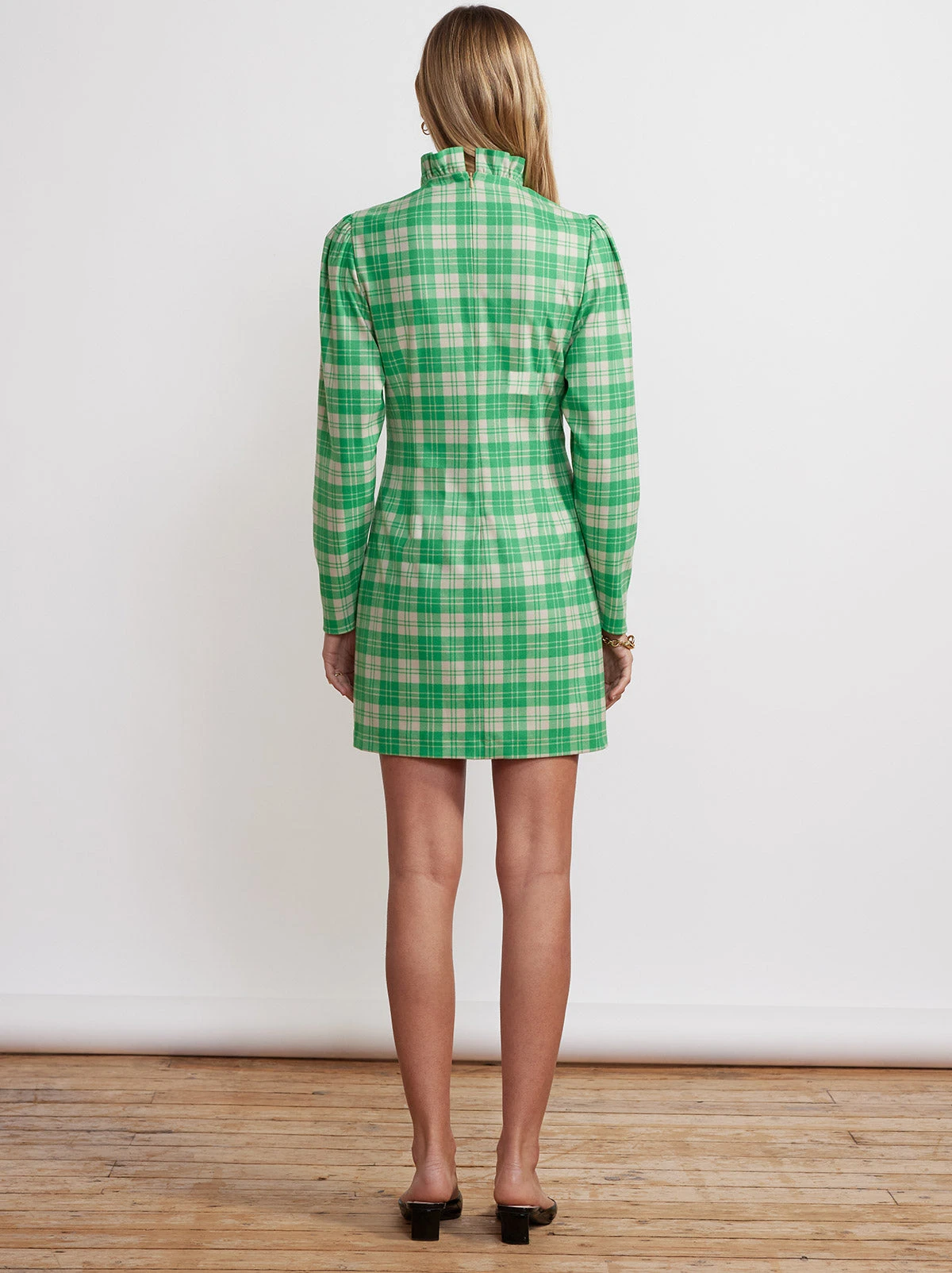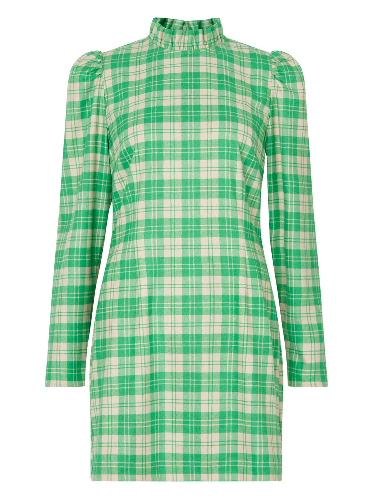 For when the weather can’t make its mind up. Danika strikes the perfect balance between short and sweet with a demure frilled neckline, long puffed sleeves and a mini skirt. Cut from super-soft green check flannel fabrication, Danika will see you through the colder months, just add tights.