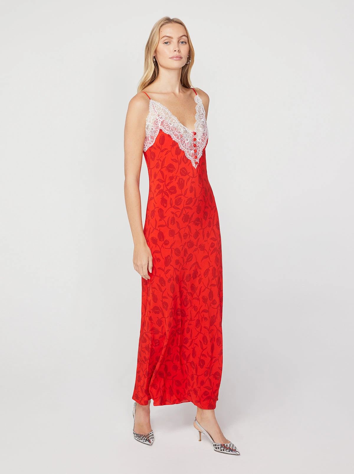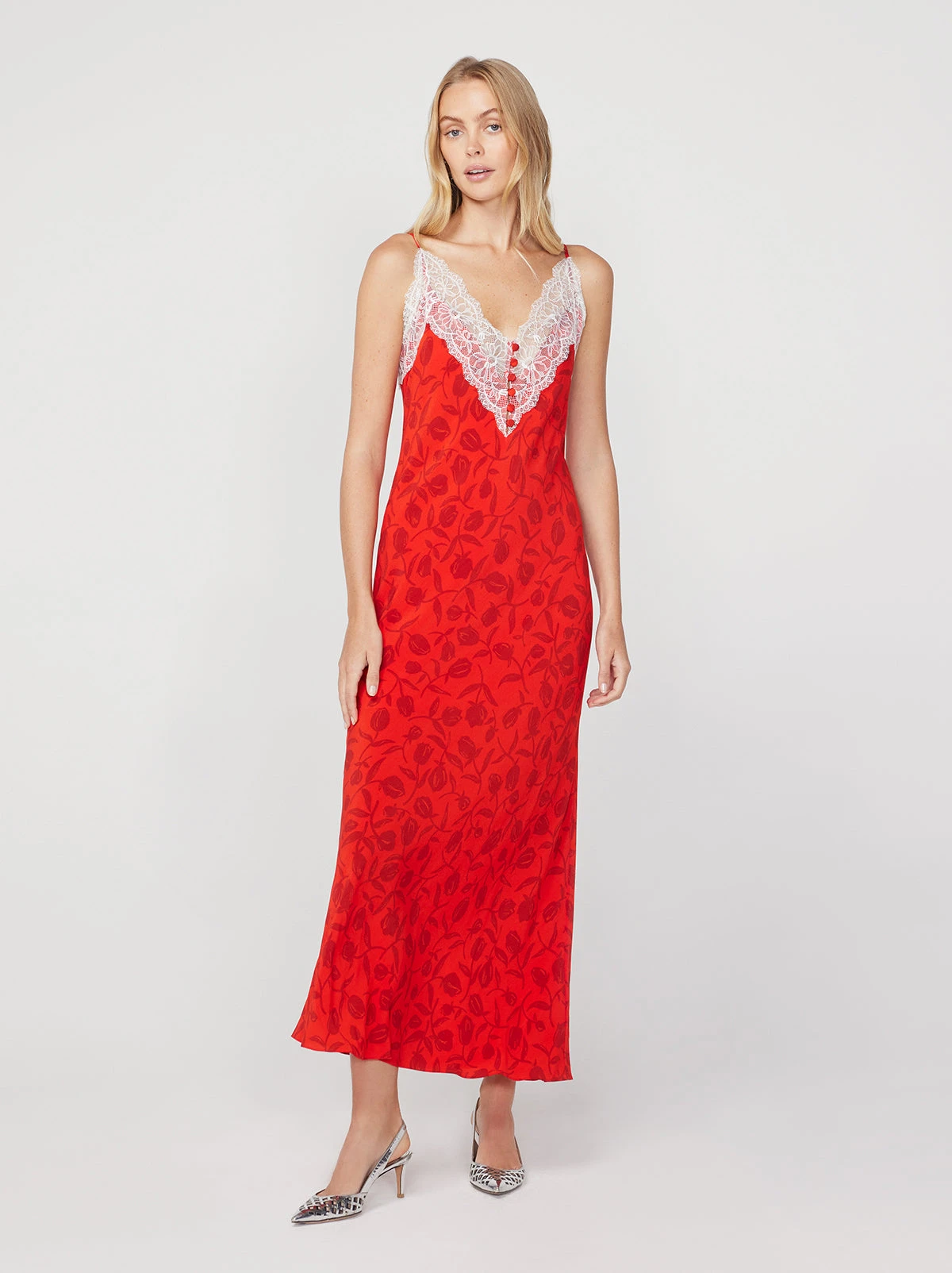 Daphne Red Tulip Print Maxi Slip Dress
