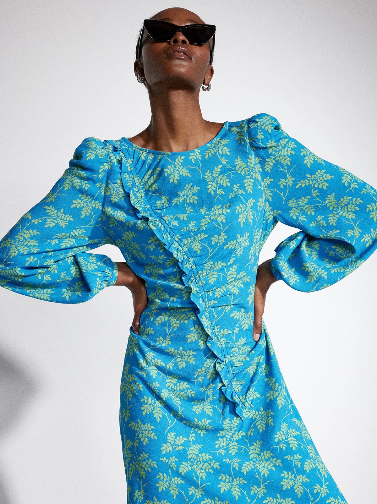 A fresh new take on maxi dressing. Taking inspiration from the New Romantics, Dorothy’s ruffle detailed shoulders and belted skirt bring a ‘more is more’ spirit. Pair with trainers for a casual daytime look and some heeled boots for the evening.