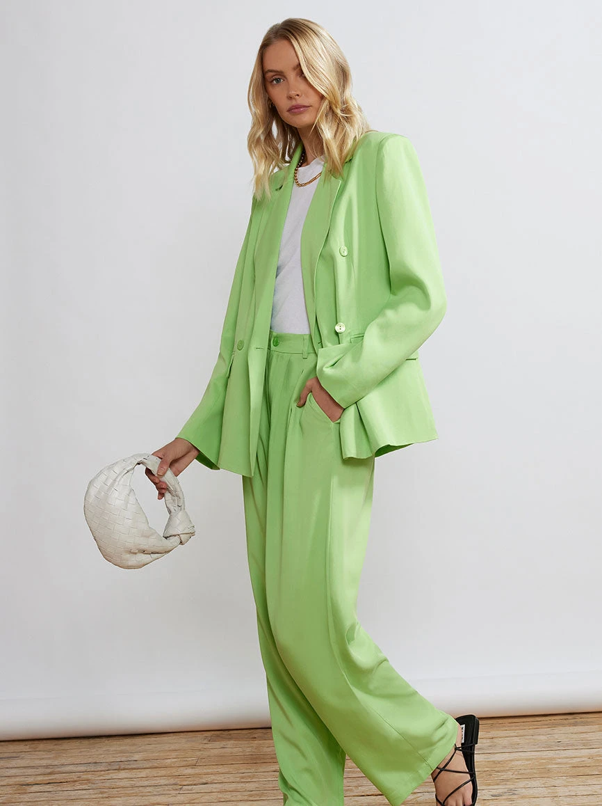 Slouchy, but make it chic. Our new mid-waist trousers are the perfect level of effortless cool. Wear with a plain white tee for instant ‘put-together-but-relaxed’ vibe, or pair with our Josephine Green Double Breasted Blazer for maximum impact.