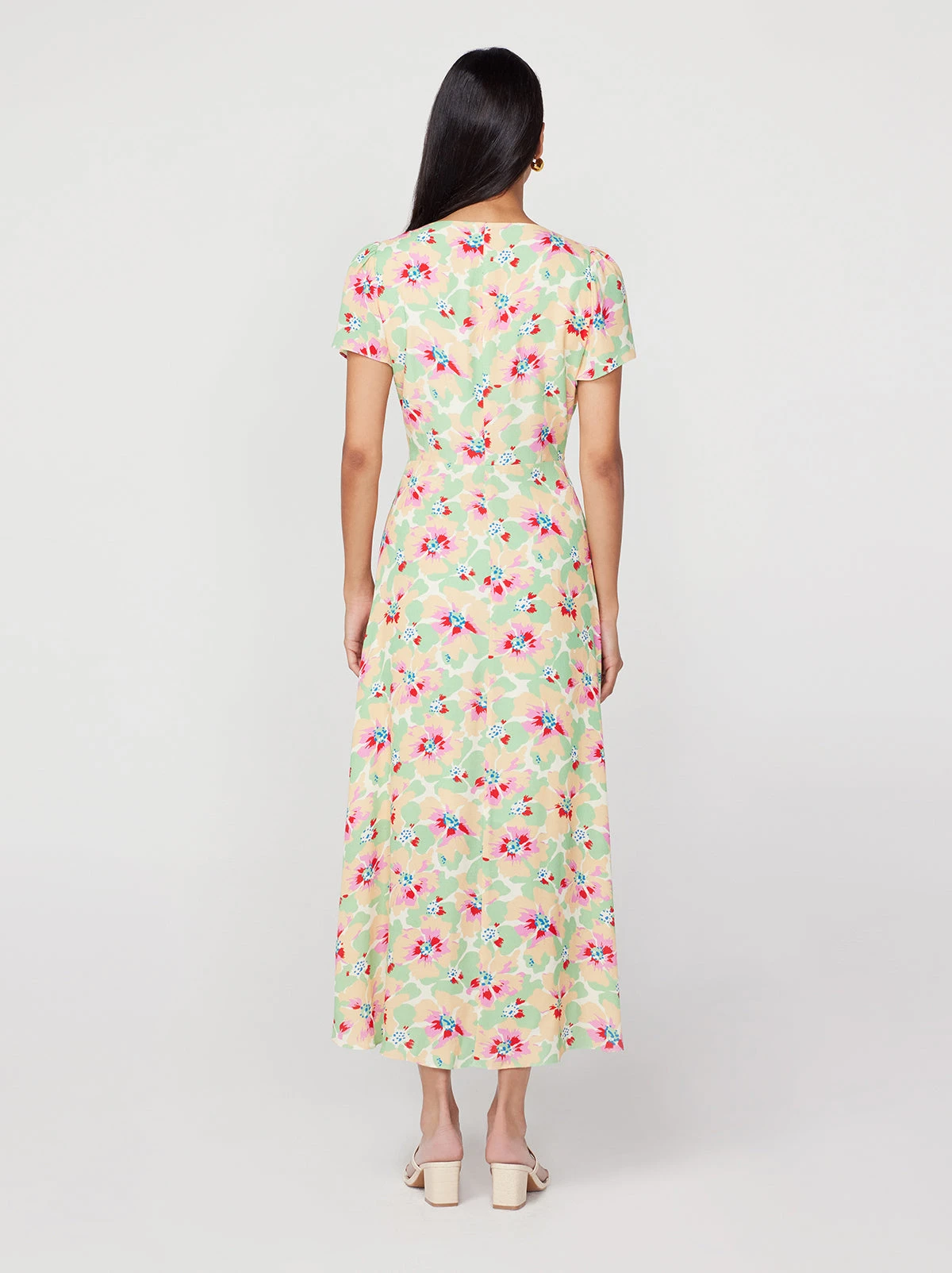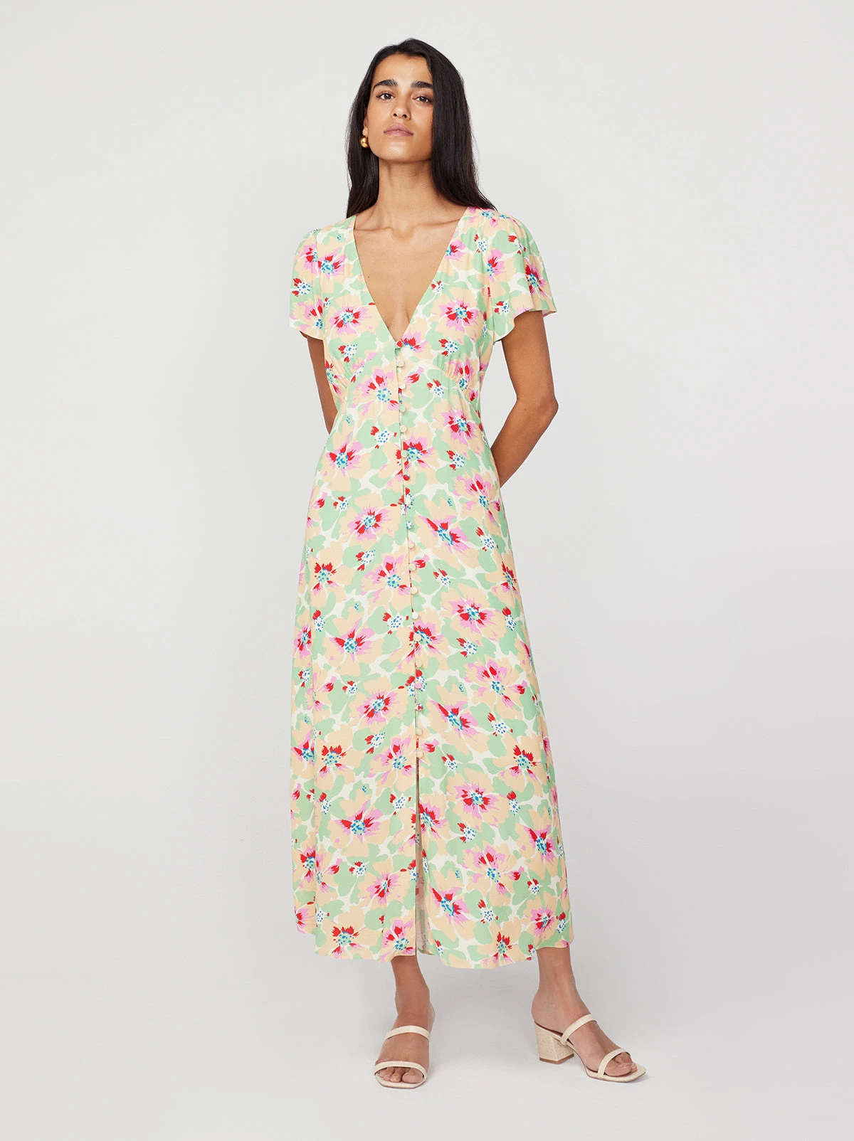 We’re all about the easy life and so is Gertrude. Her slim fit silhouette and summary front are oh-so-wearable and her short flared sleeves are perfect for when you want. a little more coverage. Her Primrose print was designed in-house in soft pastel tones of pistachio and pink.