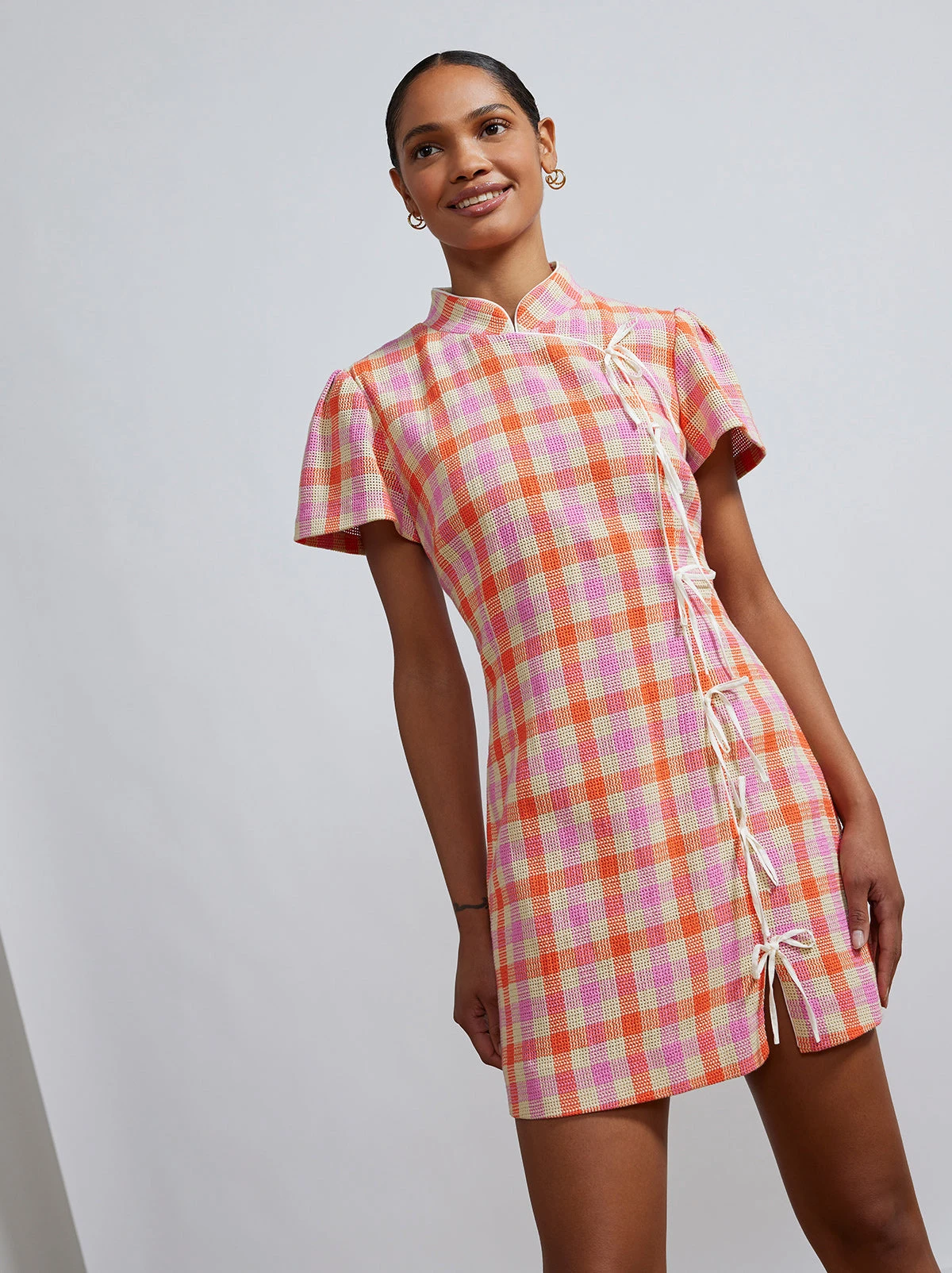 Be the first to review “Harlow Orange And Pink Check Mini Dress” Cancel reply