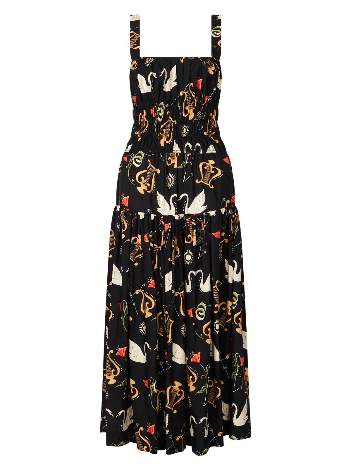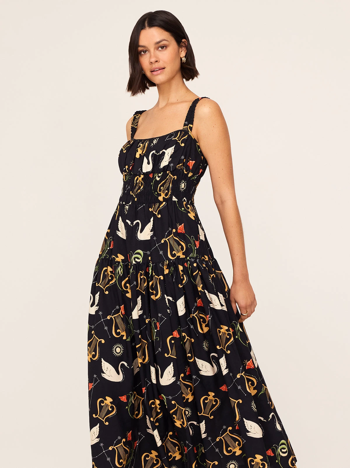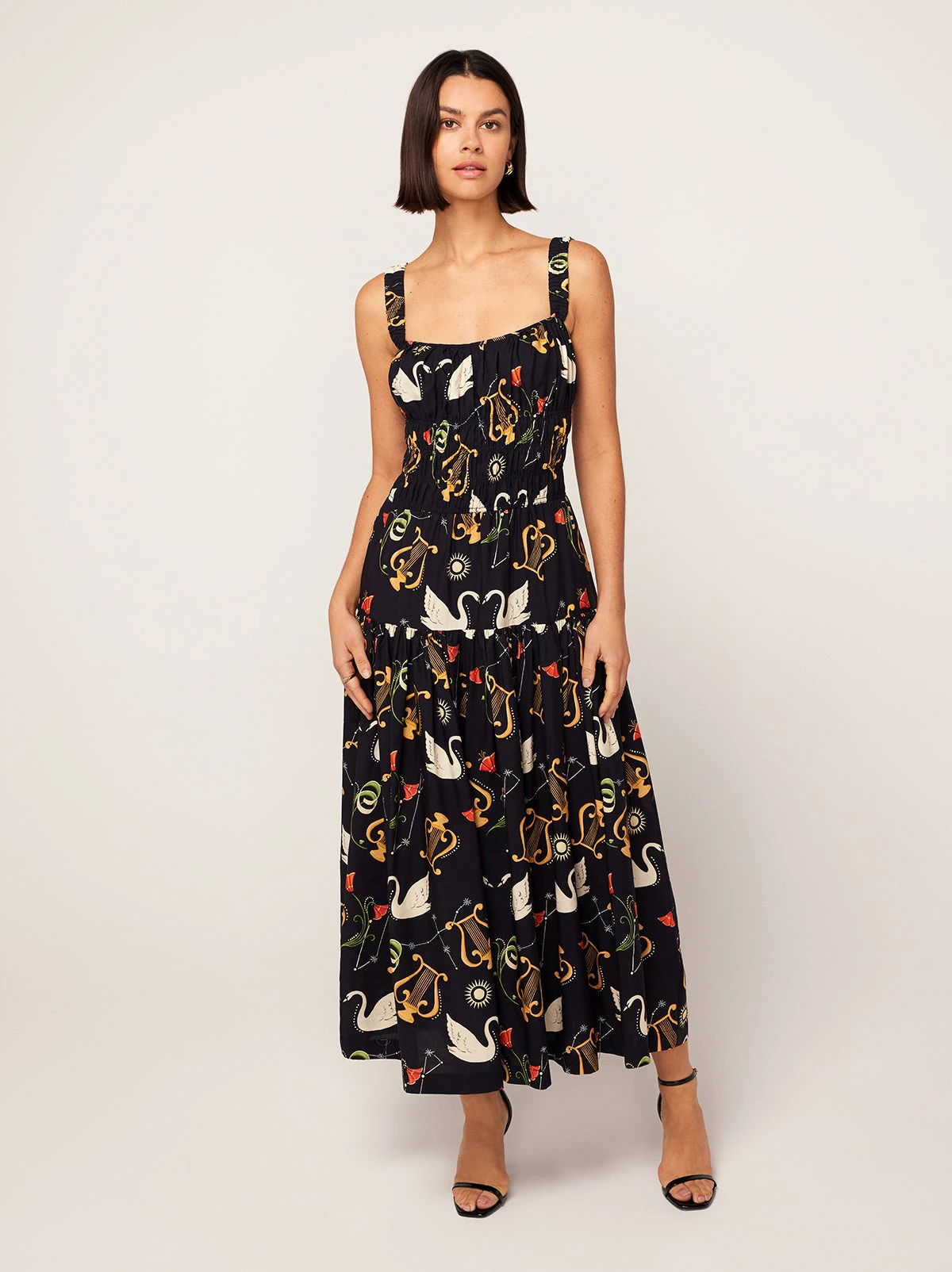 Isobel Black Cygnus And Lyra Print Midi Dress