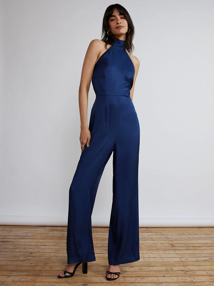 Karla Navy Halterneck Satin Jumpsuit