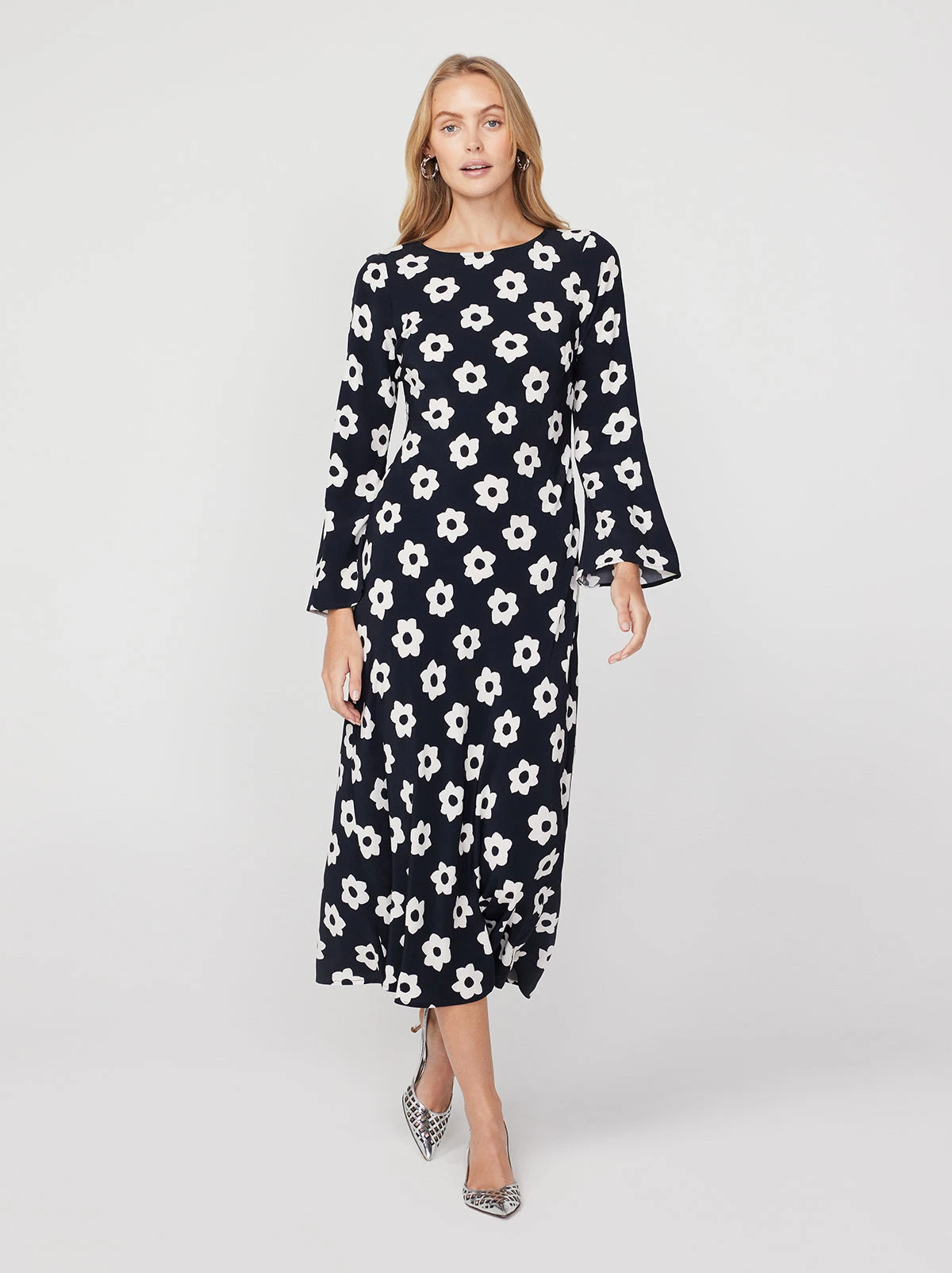 Looking for something slinky? Hello Keira! With her bias cut skirt and flared sleeves – not to mention her retro-inspired Black Tiled Floral print – she’s as flattering as she is flirty. You asked, and we listened – she’s now longer than last year. Ideal for day-to-evening wear, she looks just as great with sandals as she does with your favourite pair of heels.
