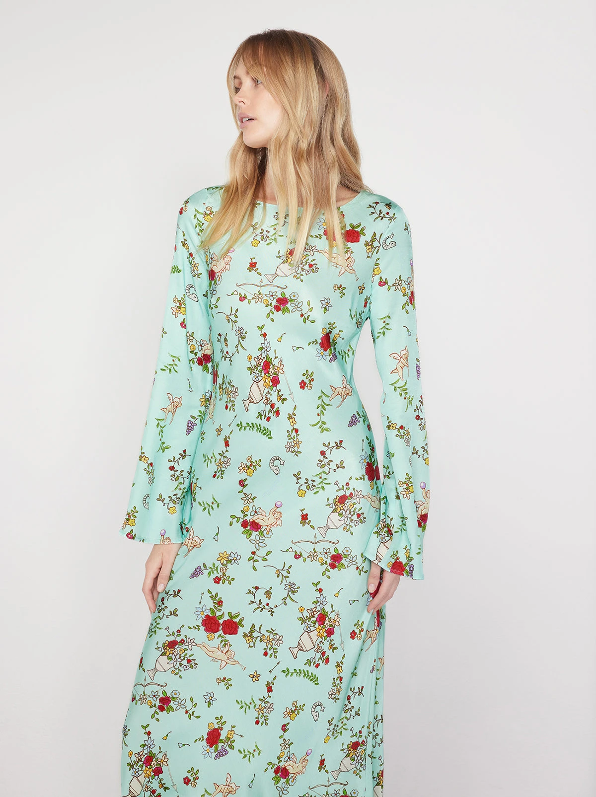 Looking for something slinky? Hello Keira! With her bias cut skirt and flared sleeves – not to mention her romantic Cherub print – she’s as flattering as she is flirty. Ideal for day-to-evening wear, she looks just as great with sandals as she does with your favourite pair of heels.