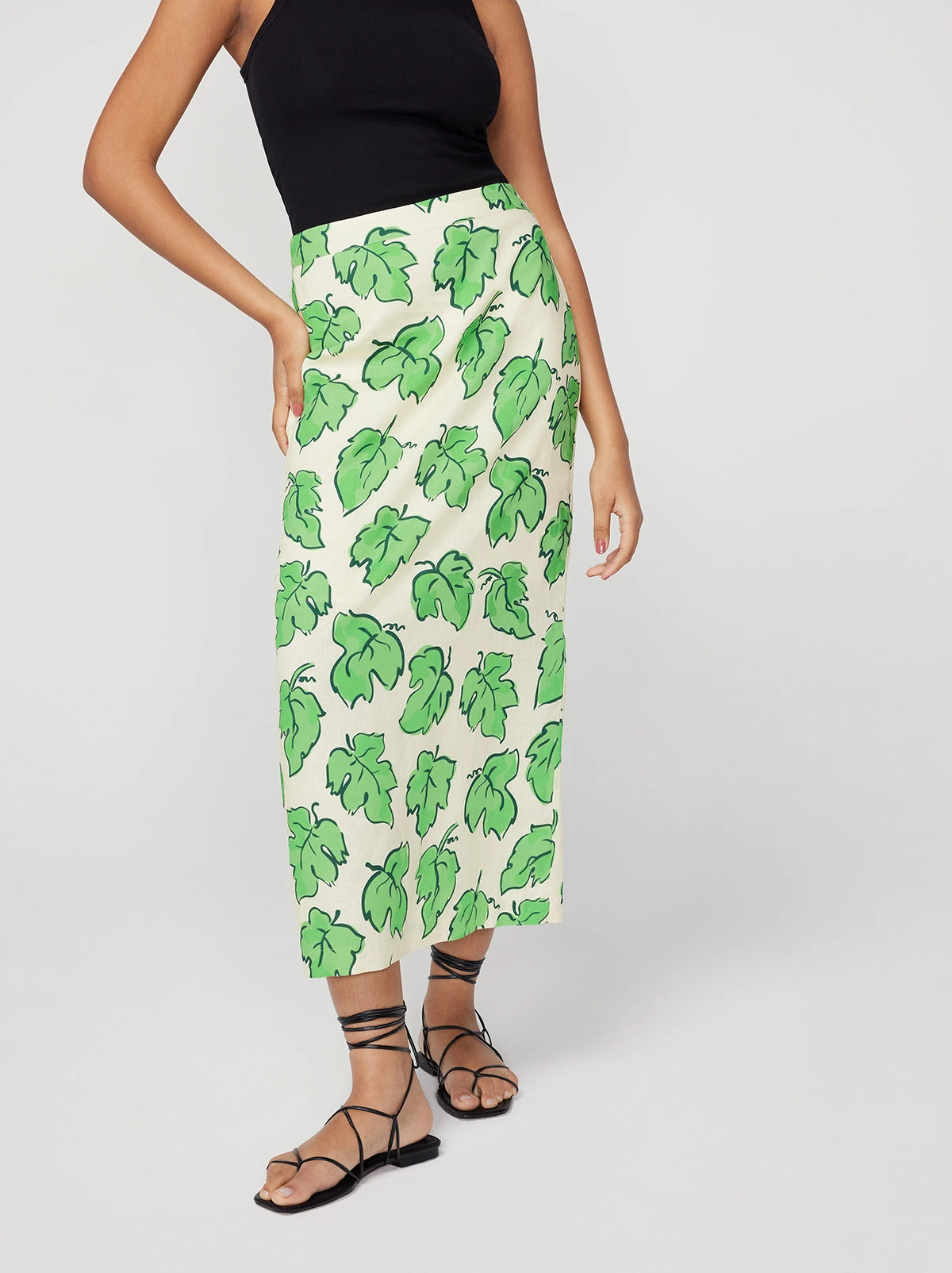 Make mine a midi. Laurel’s ’90s-inspired column silhouette and back split adds a touch of glamour to your everyday fit. Her Green Vine print is hand painted with easy, loose brush strokes for a new take on floral. Pair with our matching Irene Green Vine Top for the ultimate spring-forward co-ord.
