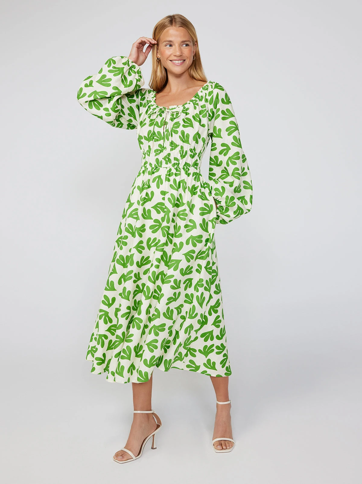 A Matisse moment. Say salut to our brand new silhouette Luella, inspired by our much-loved Margot dress. Her elasticated waist is expandable for extra comfort, and her full skirt and sleeves add a little drama. Plus, you can wear her off-the-shoulder too if you encounter some sunshine (lucky you).