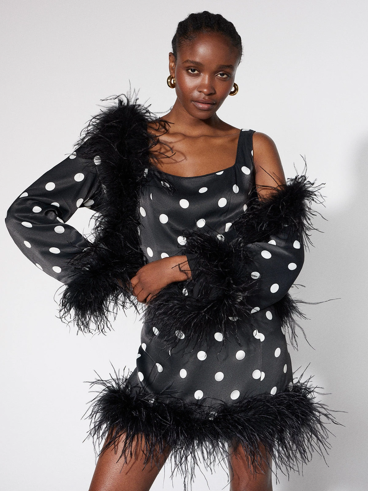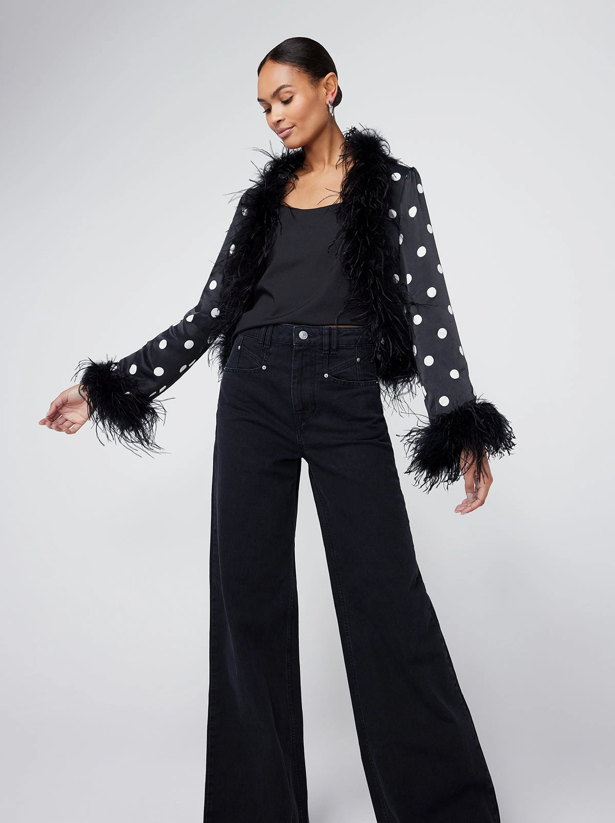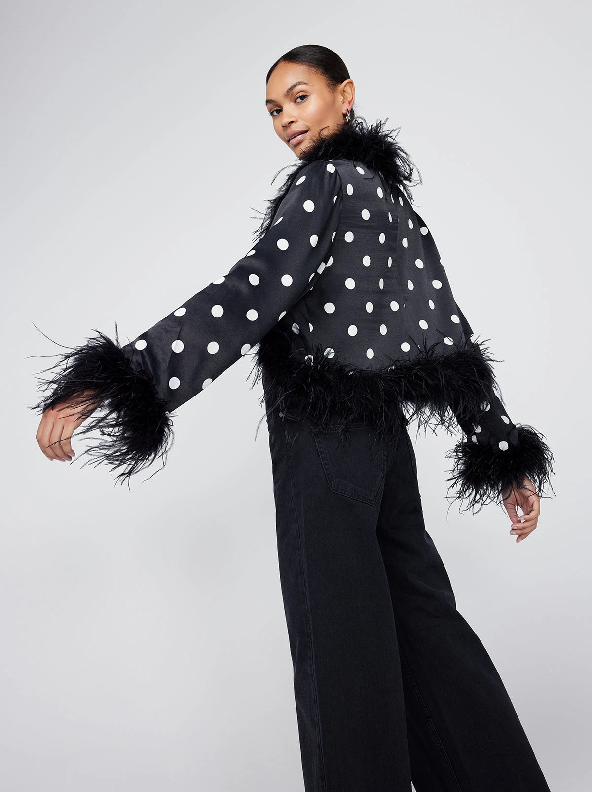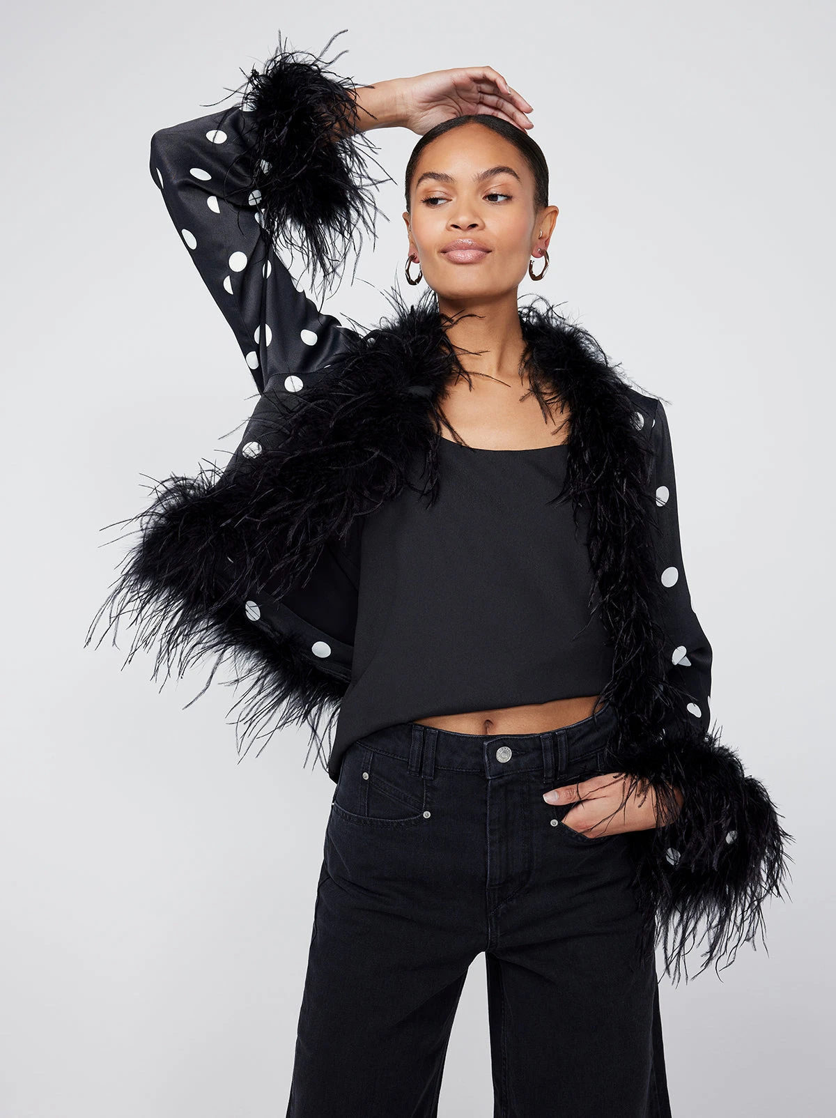 Mariah Black Polka Dot Feather Jacket