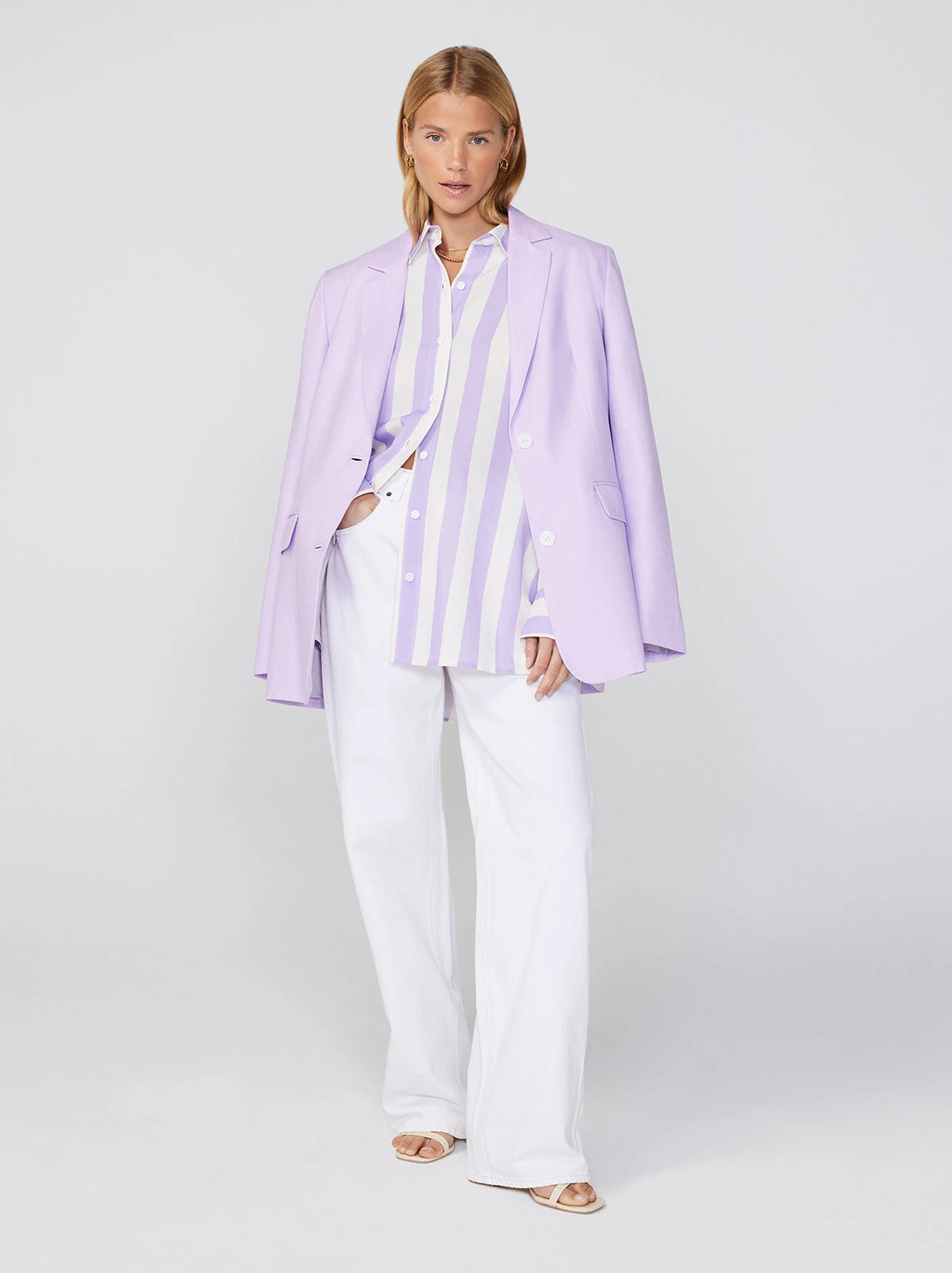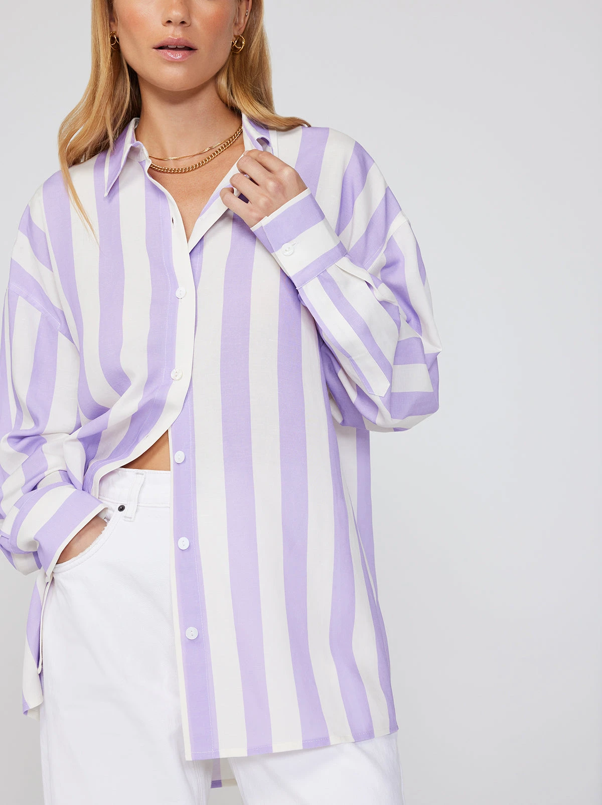 You can always count on us for easy, breezy separates. Case in point, the Mariana boyfriend shirt. In her new lilac and ivory colourway, this stripey stunner is so versatile we’re counting all the ways we can style her.