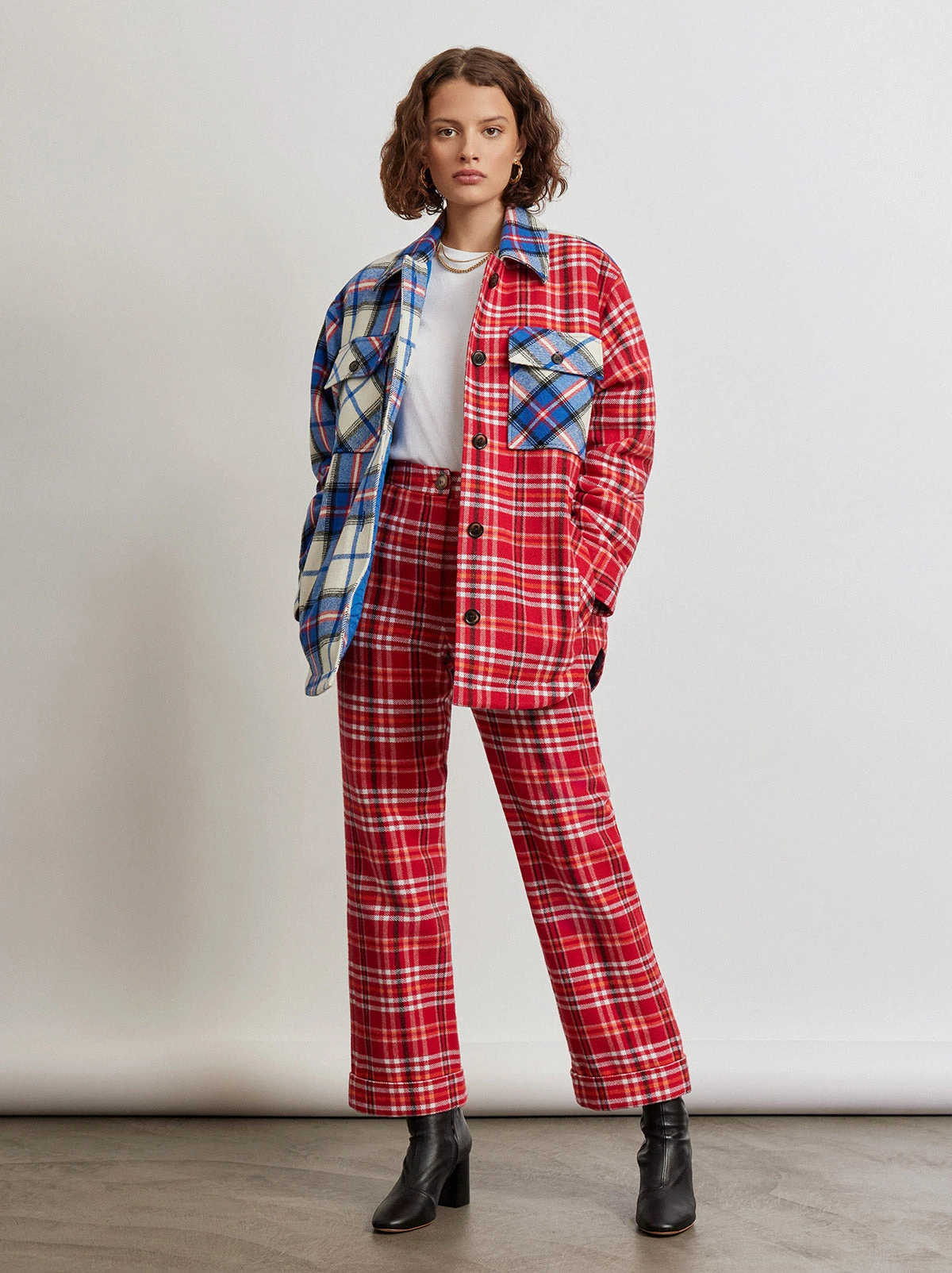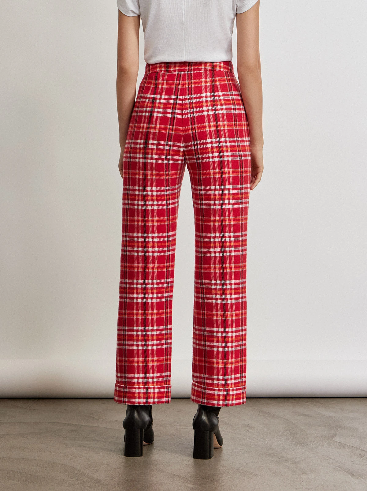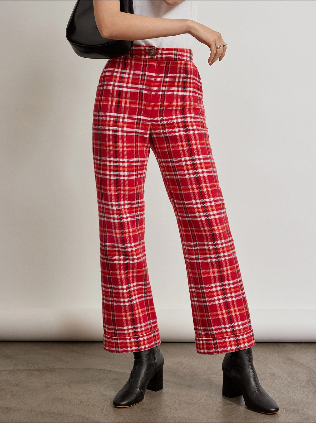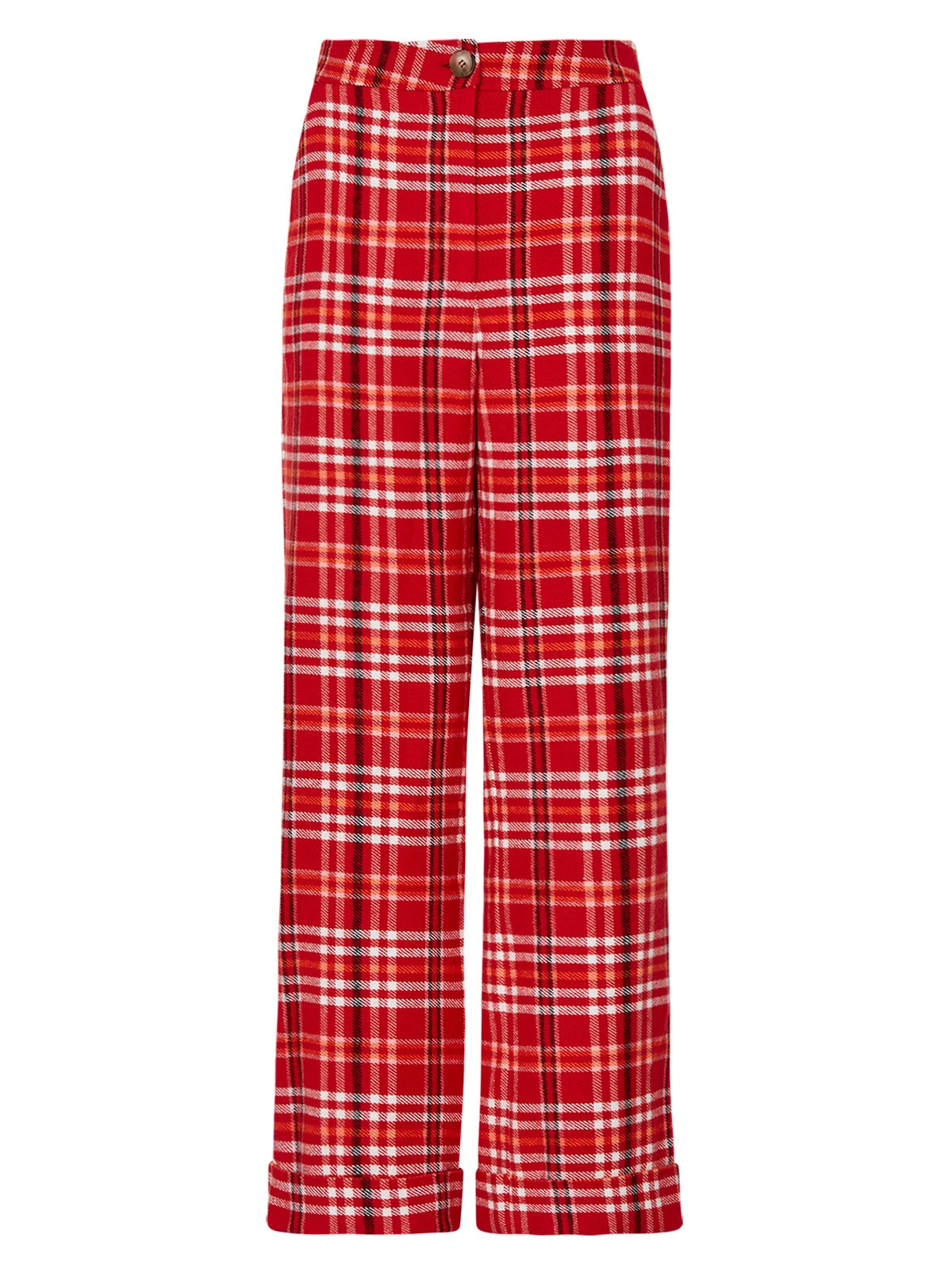 Plaid for autumn, plaid for winter. Basically, always plaid, all the time. The autumnal sister of our most popular Olive Pink Checker Trousers, this time crafted from cosy red, orange and pink checked brushed flannel. Marissa is finished with versatile wide hems which can be turned down into longer lengths. The straight fit flows into flared ankles. Do it like Jessie (or Marissa Cooper’s grunge phase in The OC Season 3) with thick-soled boots and an oversized shirt.