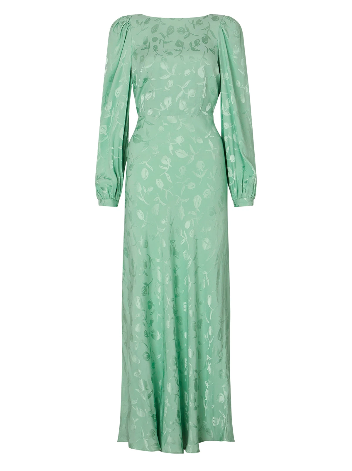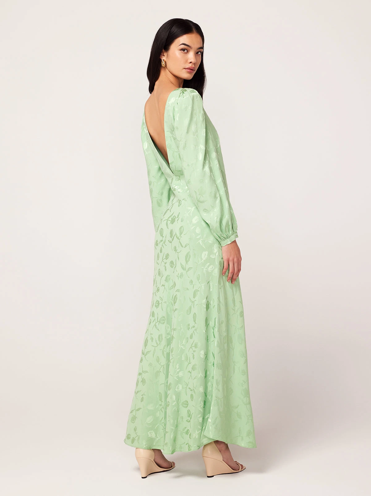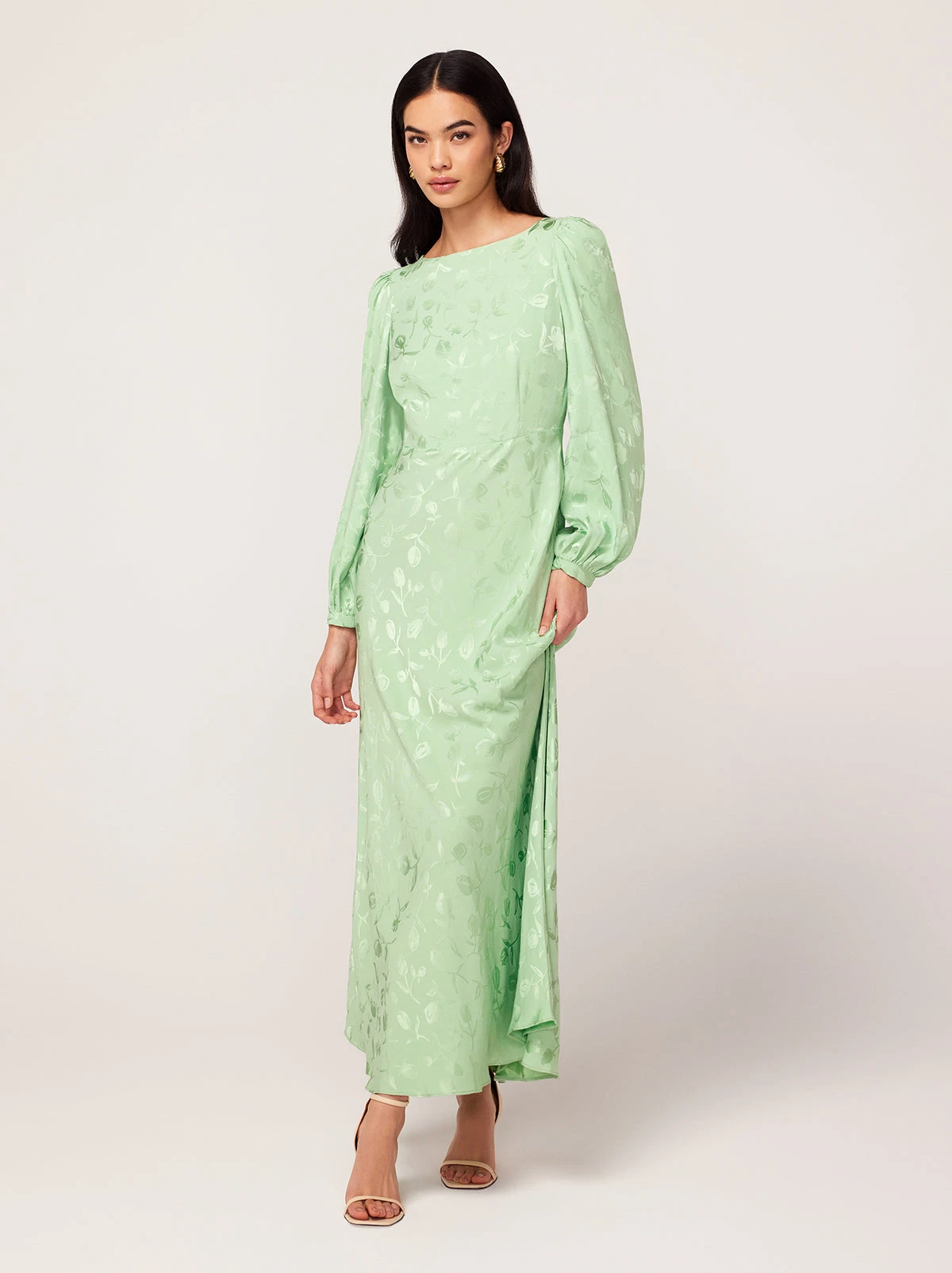 Megan Pistachio Tulip Jacquard Maxi Dress