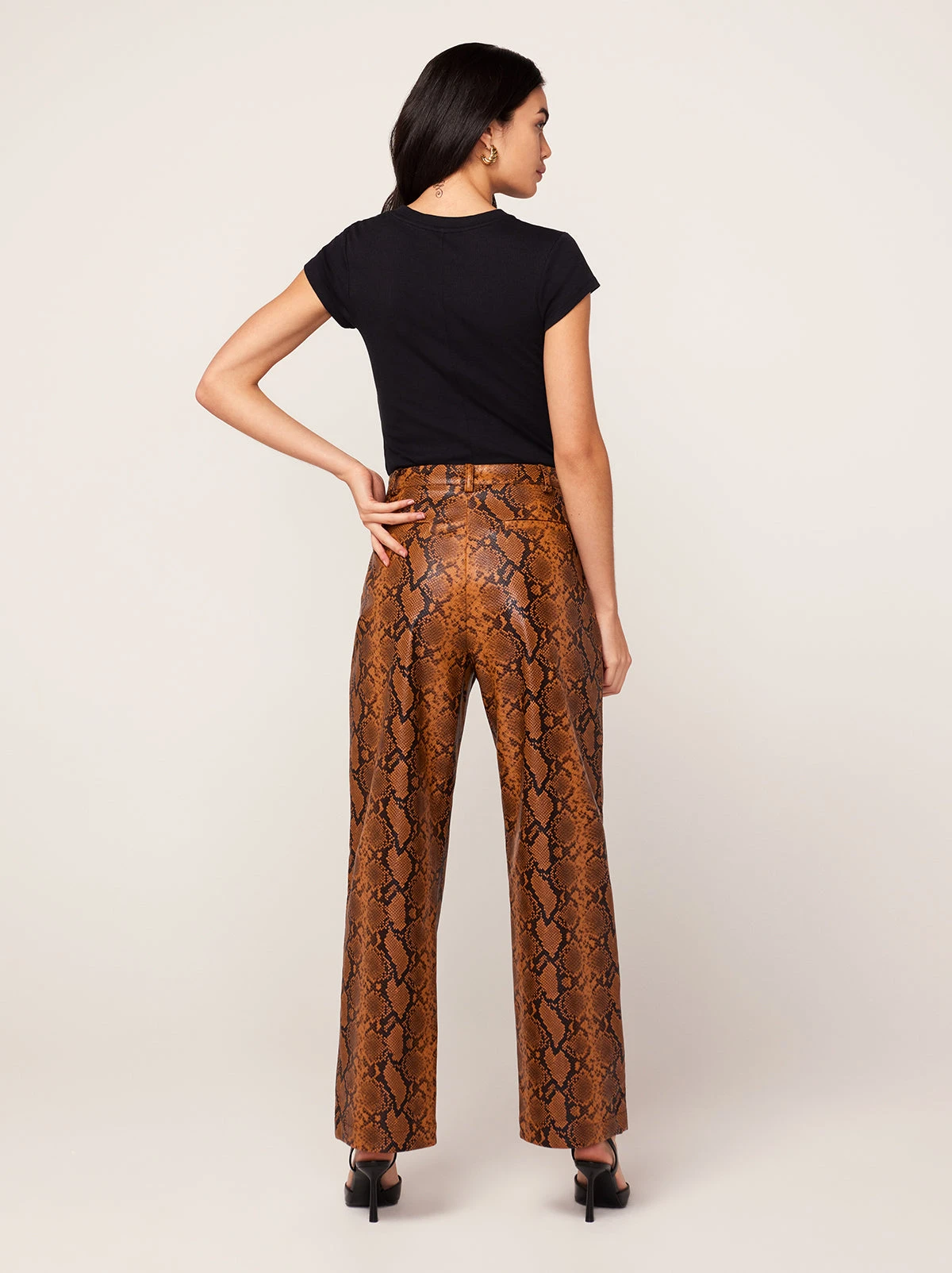 Let your trousers do the talking. Nova is a mid-rise, relaxed pair with a slouchy, wide-leg fit in textured caramel Snakeskin vinyl. Pair with the Wilma Caramel Snakeskin Print Jacket to complete the look.