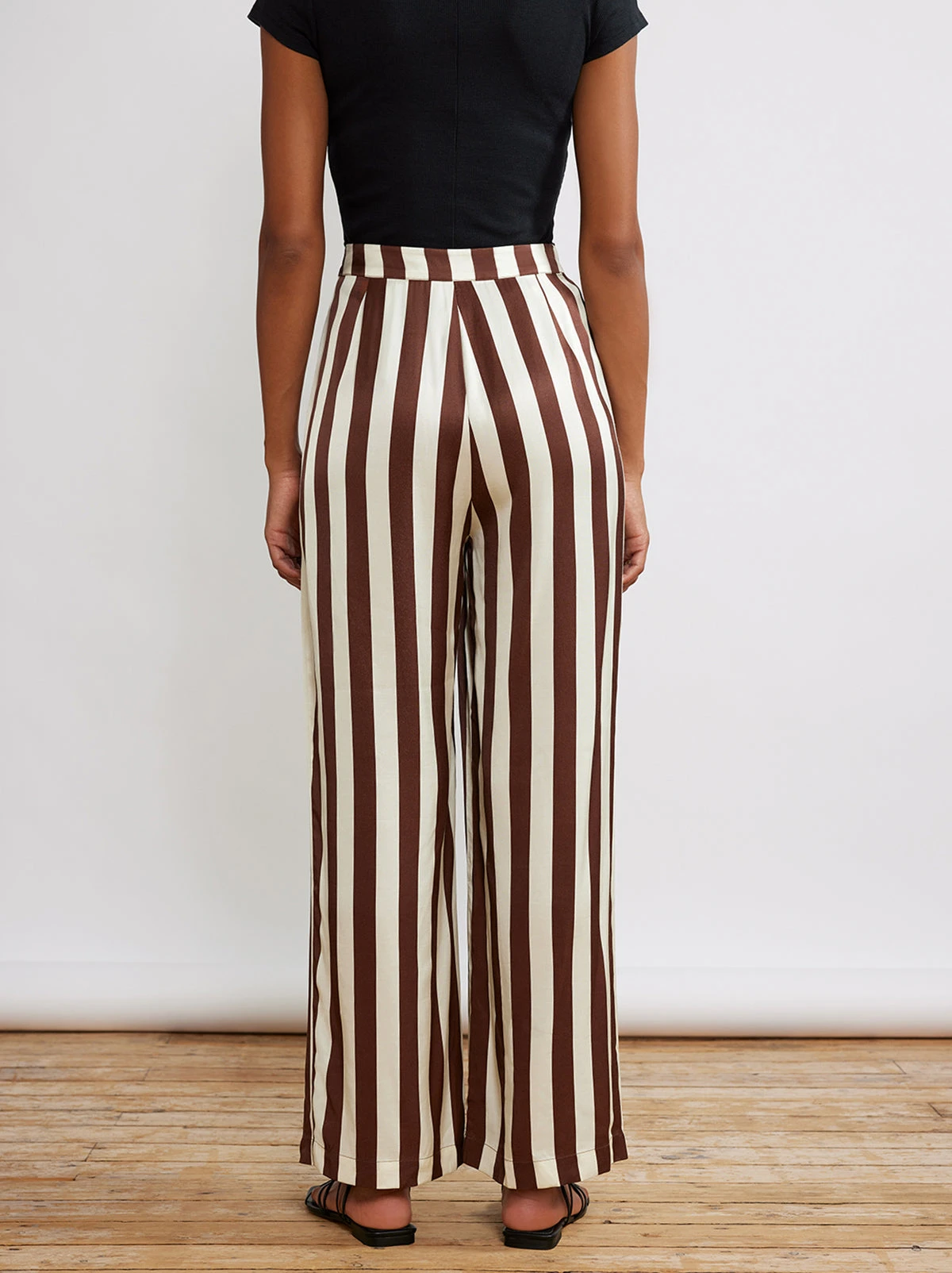 We love a luxe pyjama look for its ease and cool versatility and we’re thrilled to introduce you to our Phoenix trousers. A satin dream in chocolate stripe, these easy-fit, wide-leg trousers feature a waistband with a summary and fly closure. Pair with the matching Angela Satin Shirt for the full look.