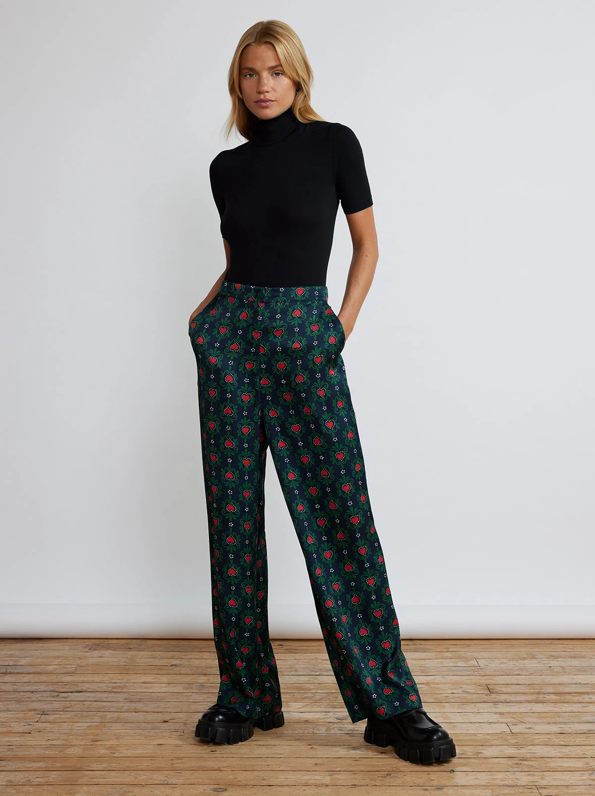 The perfect luxe PJs. A satin dream in our new retro-inspired heart print, these easy-fit, wide-leg trousers feature a waistband with a summary and fly closure.