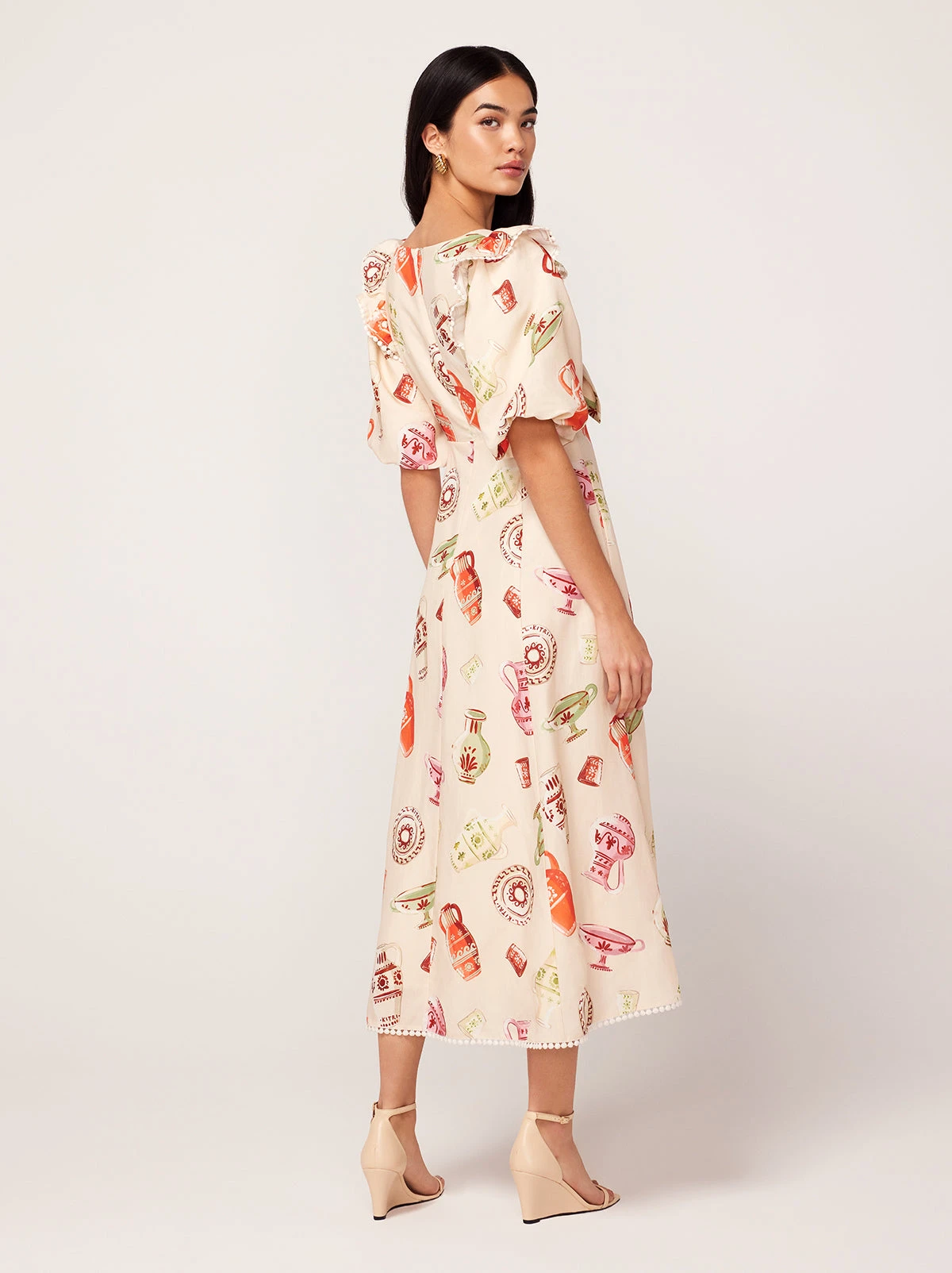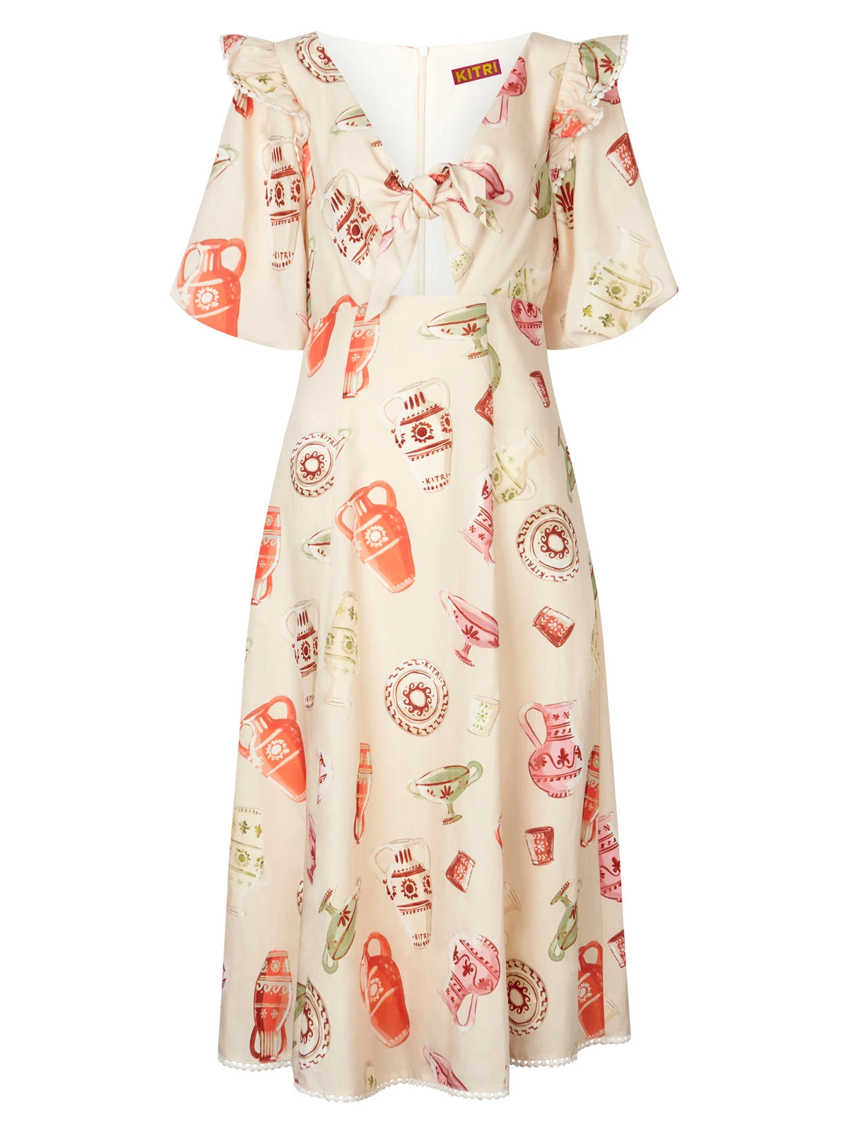 Pia Ivory Pottery Print Midi Dress