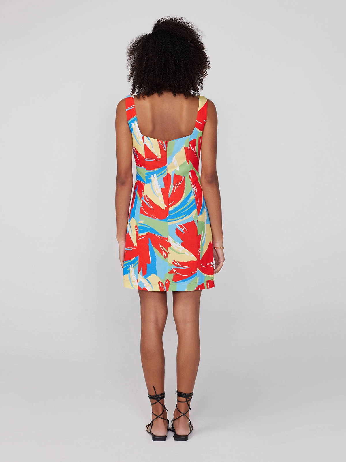 Posey brings the party. Release your inner ’80s supermodel in this thigh-skimming mini, with flattering square neck and playful split hem. Her bold Abstract print will look great with that tan you’ve been working on.