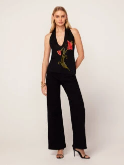 Ursula Embroidered Denim Midi Dress