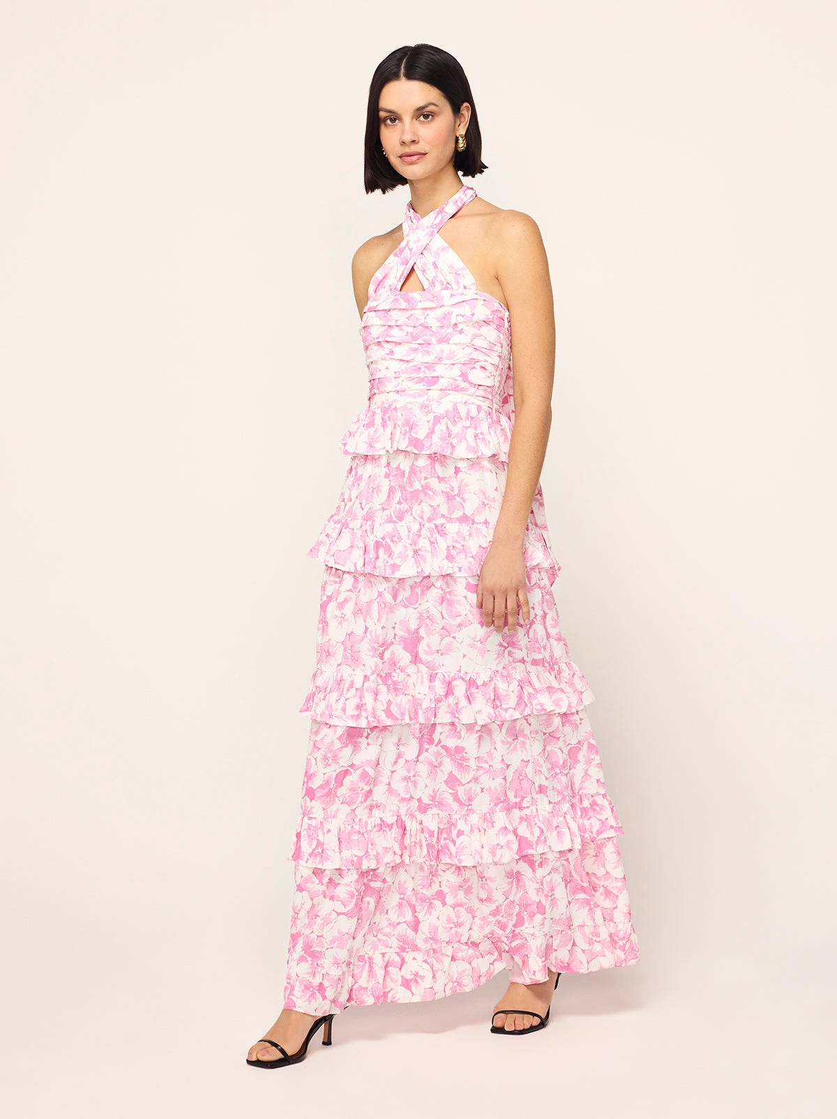 She’s a show-stopper. Introducing Romily, our full-length floor-sweeping maxi who brings all the drama. Her cross-halterneck and shirred back keep things comfortable, whilst her five-tier skirt provides the perfect swish. You asked, we listened – we’ve improved Romily’s fit from Summer 23 by lifting the length and bringing her closer to the body for a more flattering fit.