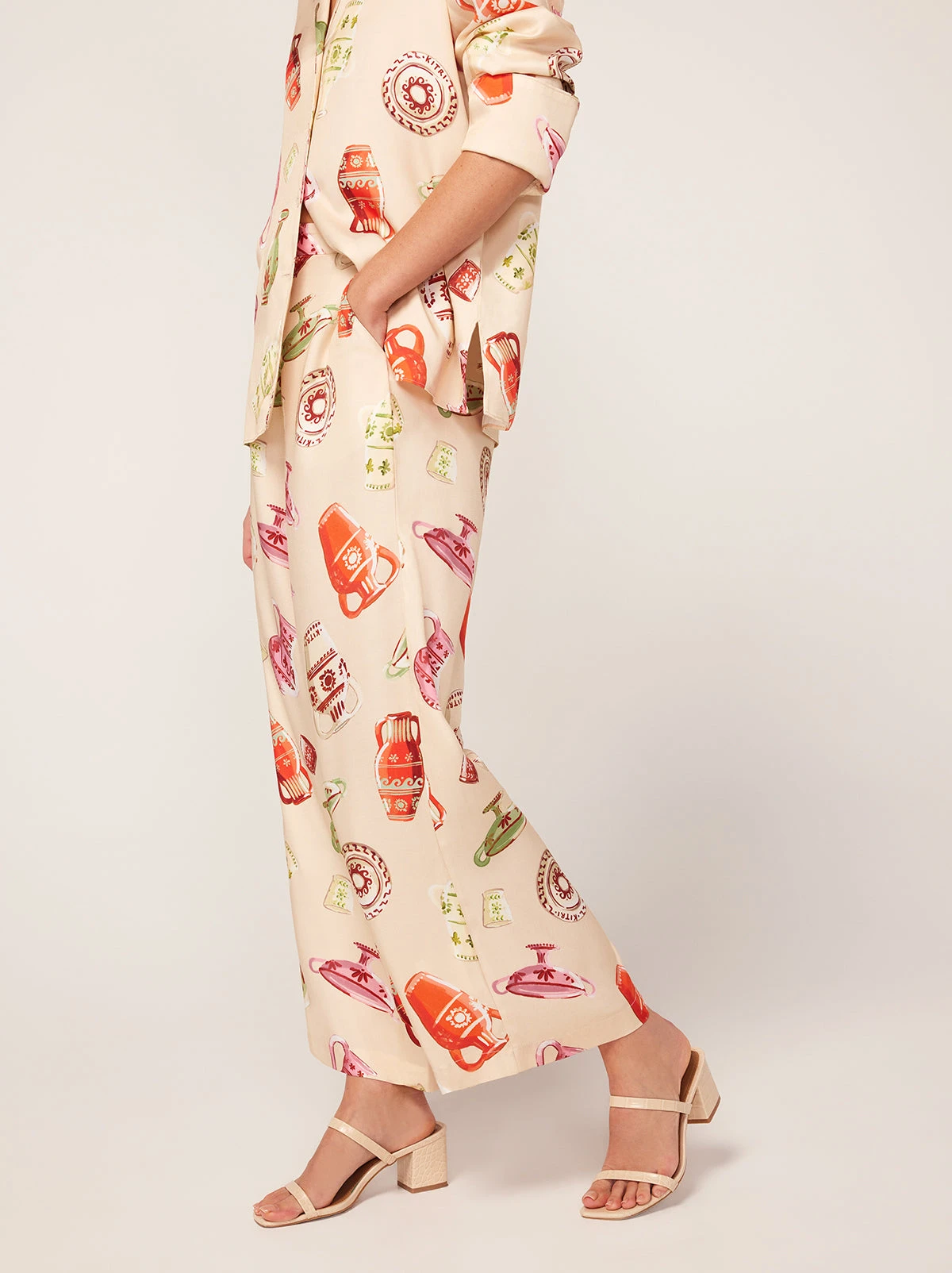 The epitome of easy elegance. Romina’s a high-waisted wonder with a flattering ankle-cropped length in our playful hand-painted Pottery Print. A casual spin on viscose satin with a subtle sheen. They’re almost too easy to throw on. Pair with our Cady Ivory Pottery Print Shirt for the ultimate co-ord.