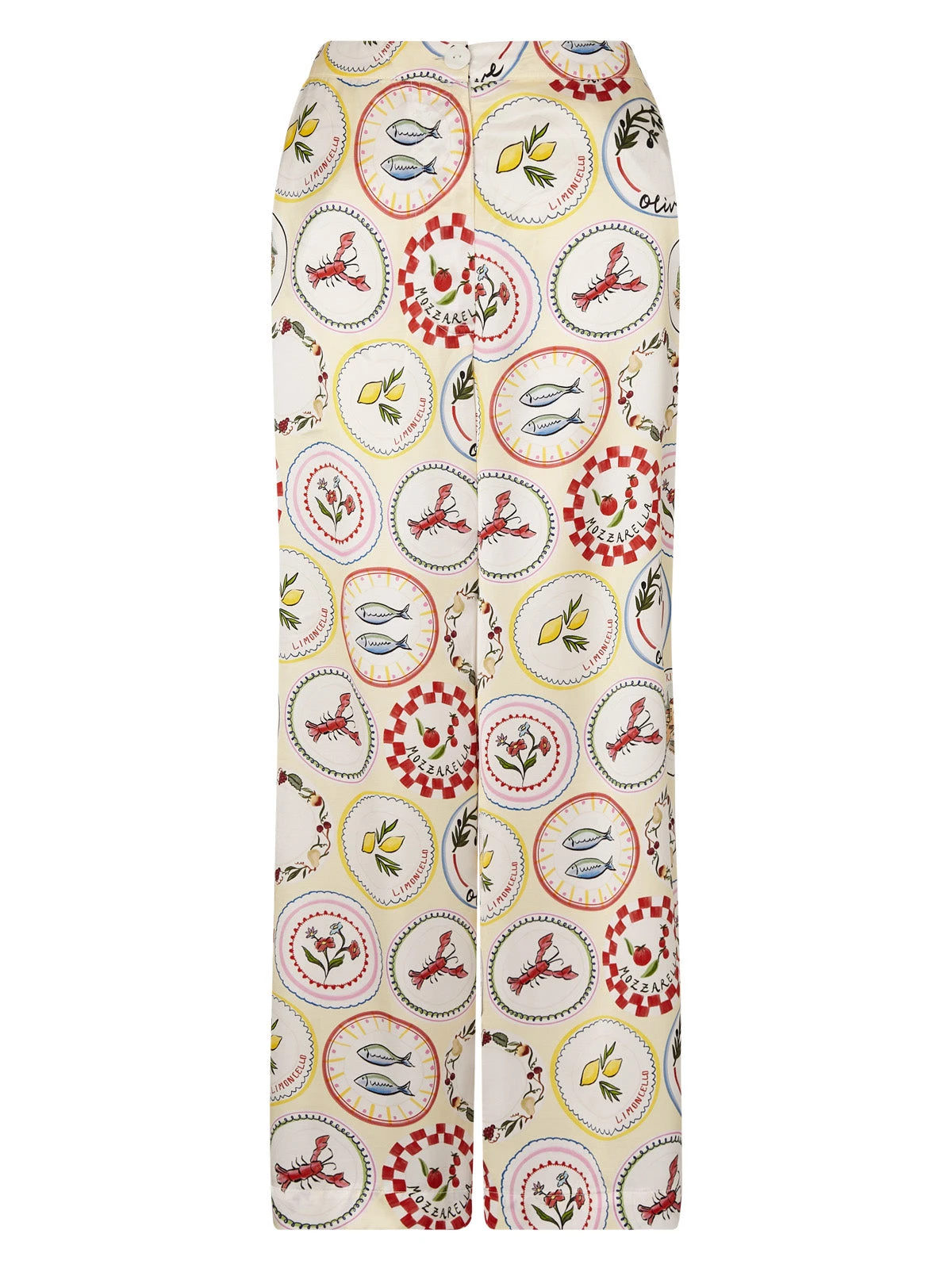 Our love for small plates has reached new heights. Romina’s a high-waisted wonder with a flattering ankle cropped length in our delectable hand-painted Vintage Plates print. A casual spin on viscose satin with a subtle sheen. They’re almost too easy to throw on. Pair with the matching Cady Vintage Plates Shirt.
