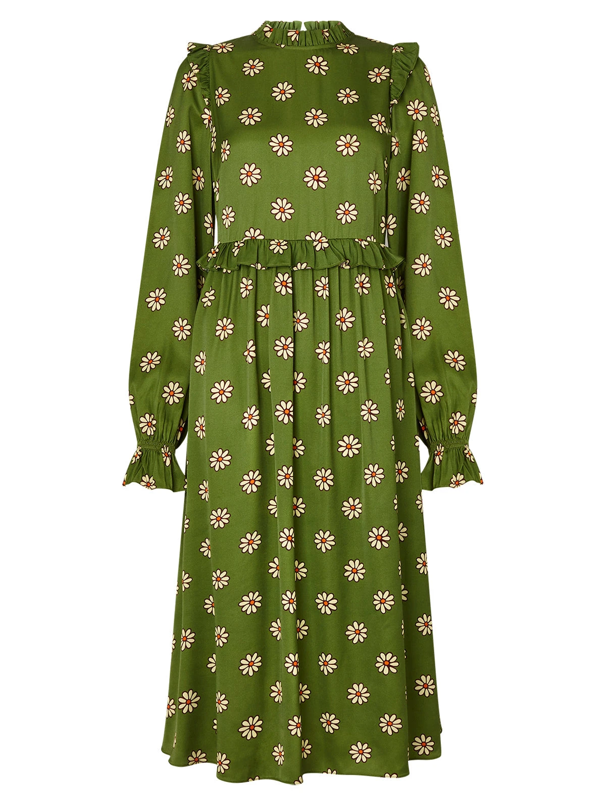 Savannah Green Retro Floral Midi Dress
