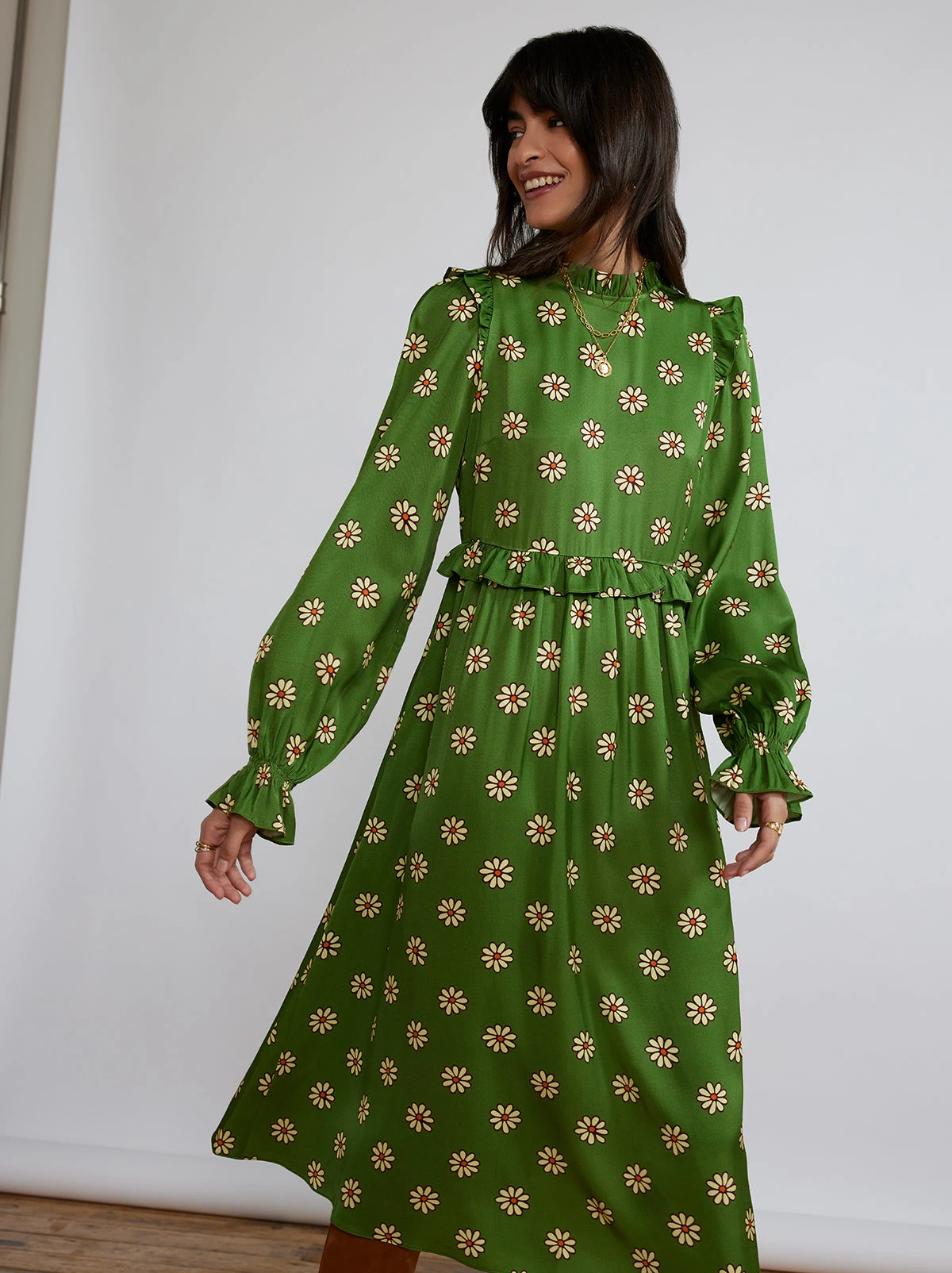 Wear her at the weekend or for a meeting in the week – she’s versatile like that. Savannah is our new go-to dress with her feminine frilled neckline, puffed sleeves and voluminous skirt. Easy-fit and flattering, pair with boots now and sandals later.