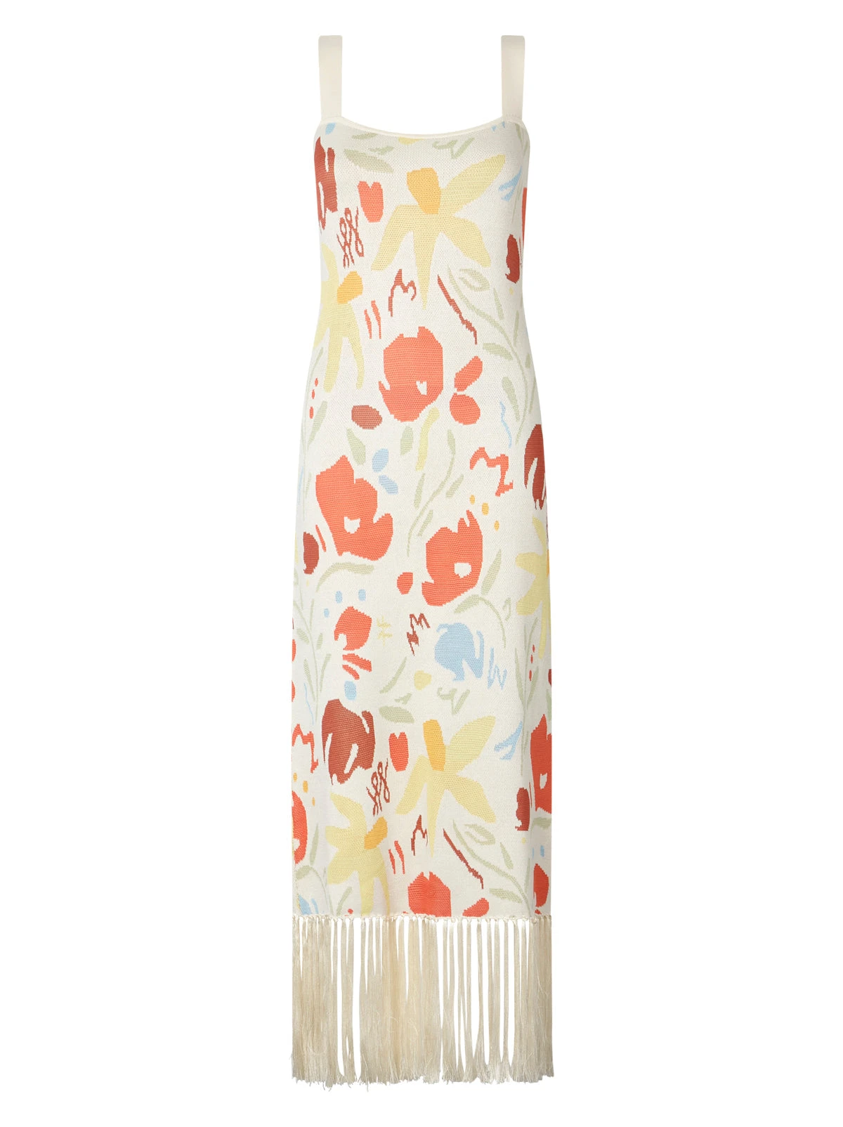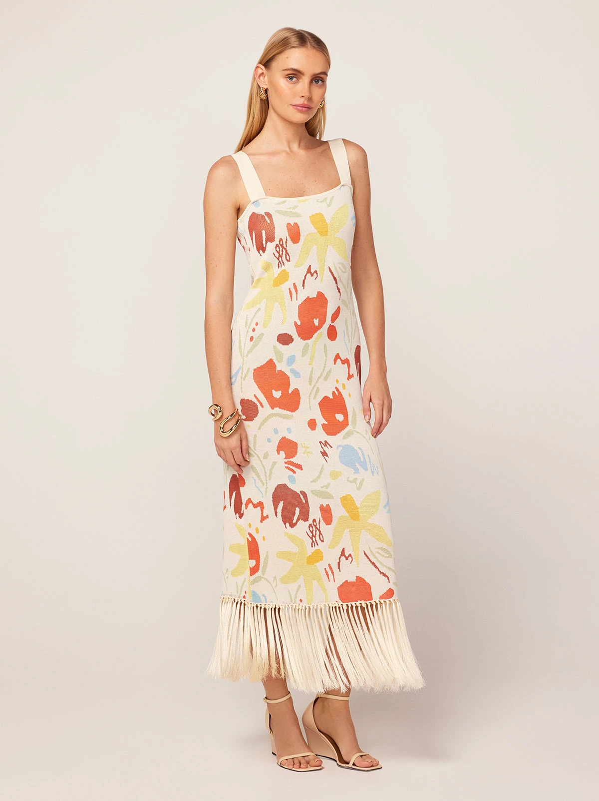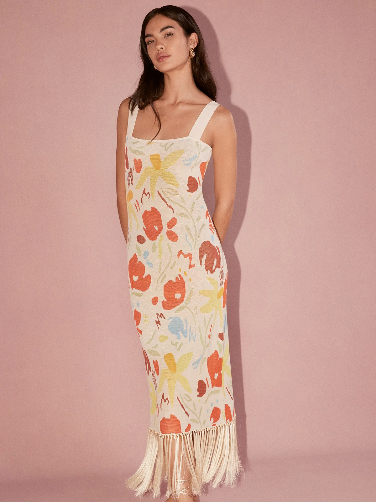 Not-your-average knitted dress. Talitha is flattering and figure-hugging jacquard knit with a compact finish. Her wide straps are bra-friendly (you’re welcome) and her hem fringing adds something fancy. Who said comfort needed to be compromised?