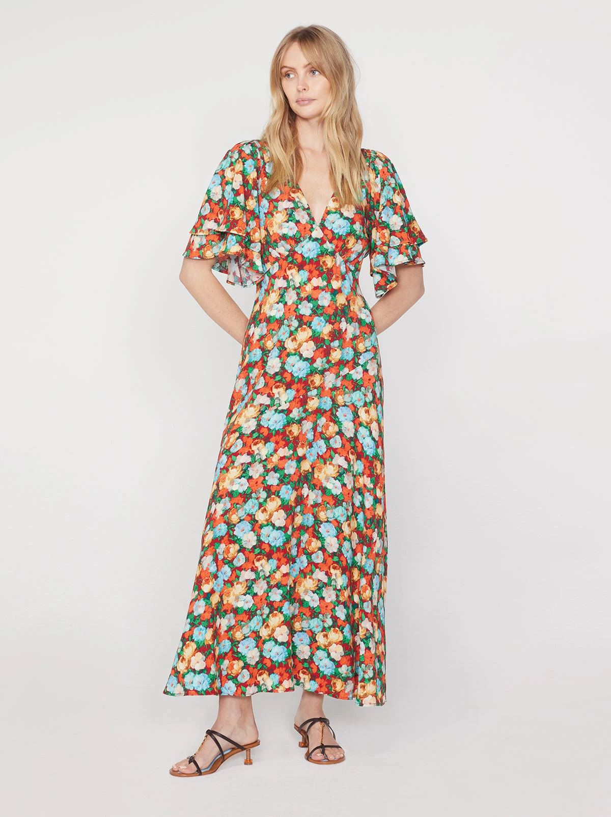 Tallulah Blue Impressionist Floral Print Maxi Dress