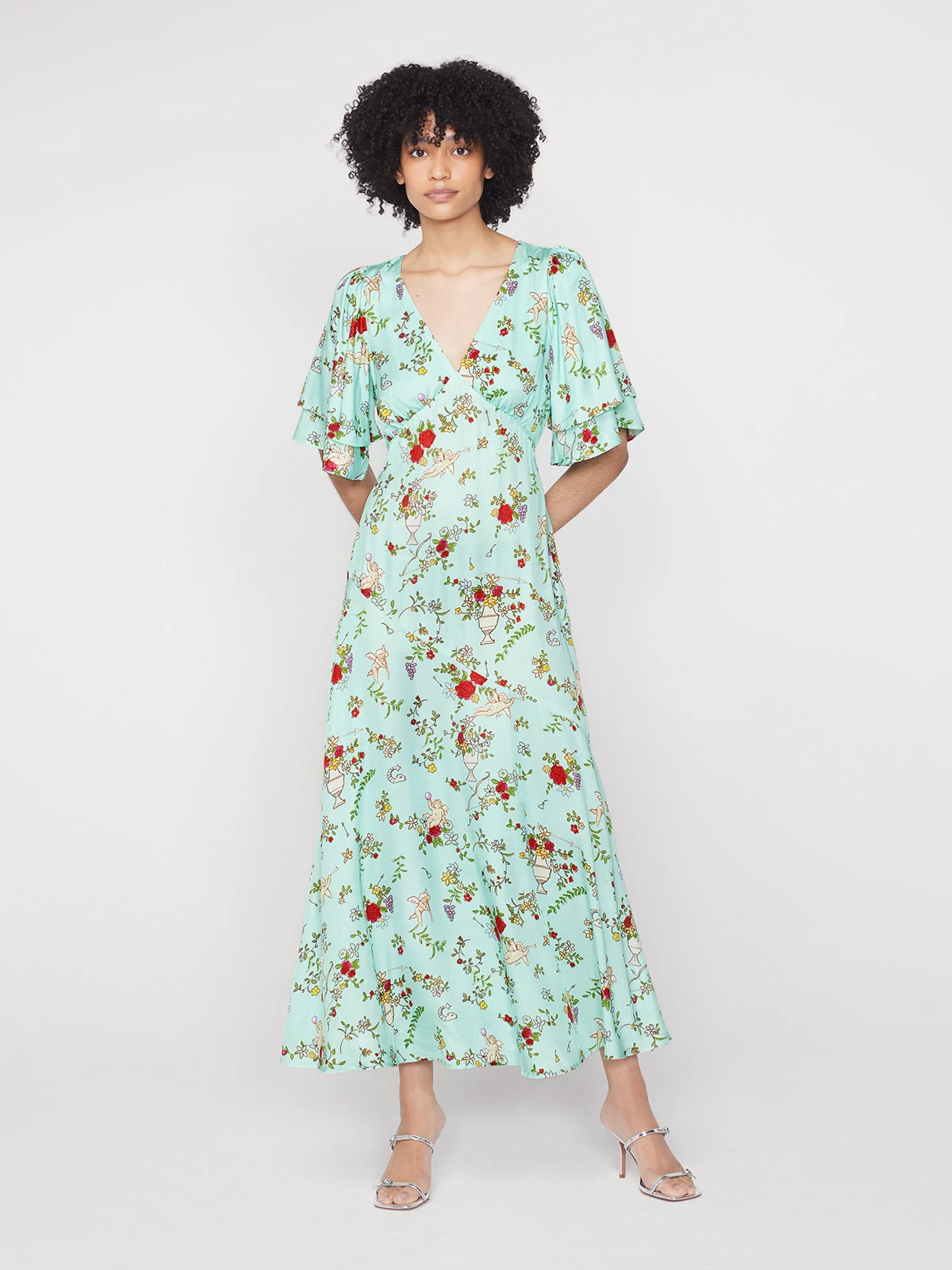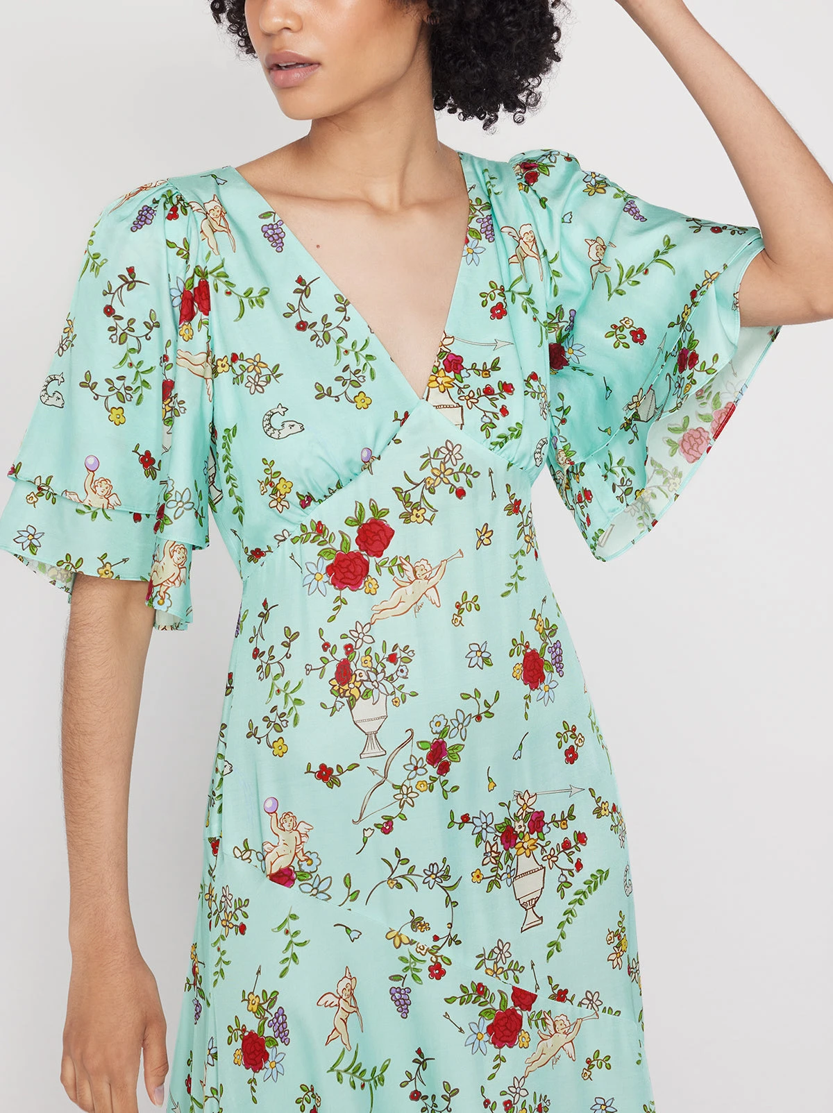 Watch out for arrows. Tallulah exudes sartorial appeal with her tiered, angel sleeves and flirty v-neck. Her circle-cut flared skirt adds to her swishability and her artful Cherub print keeps her feeling classic.