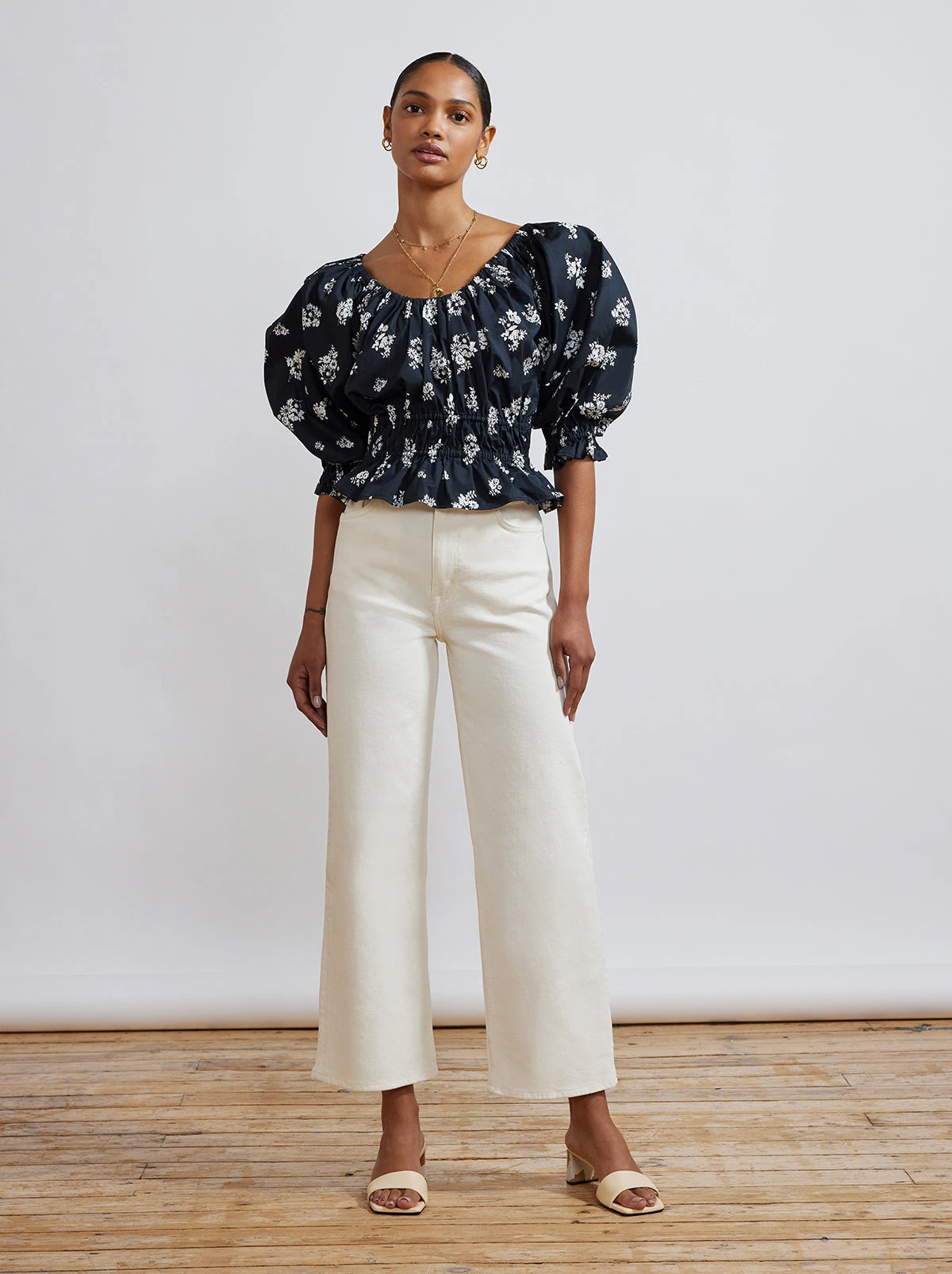 Meet Margot’s little sister Tina. She takes ‘jeans and a nice top’ to the next level with her flattering elasticated waist and puffed sleeves. She’s versatile too, wear on or off the shoulder depends on your mood (or weather).