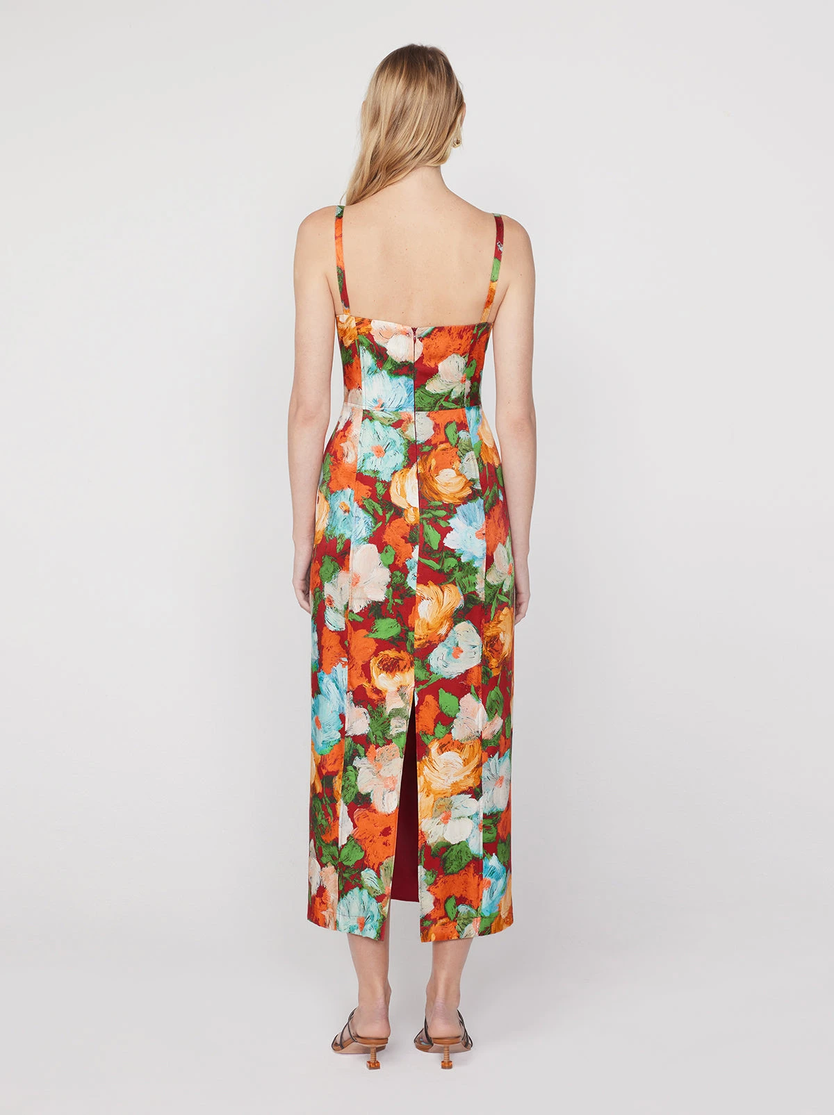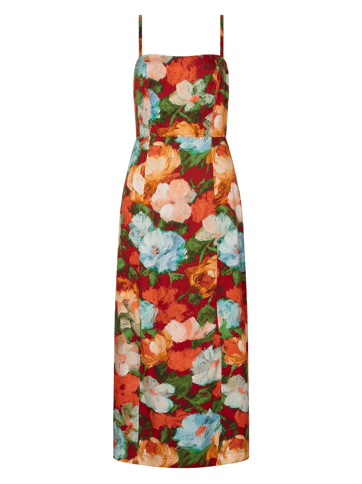 You’re the art now. Introducing Ursula, a sleek ’90s-inspired column dress in Cezanne-inspired Blue Impressionist Floral print, hand coloured in-house. With her flattering fit, slim straps and back split, prepare for more than a few glances.