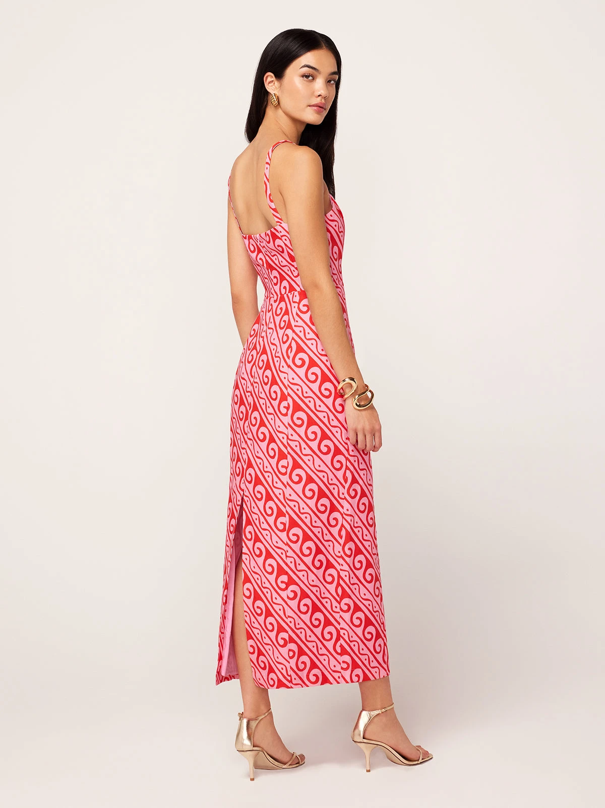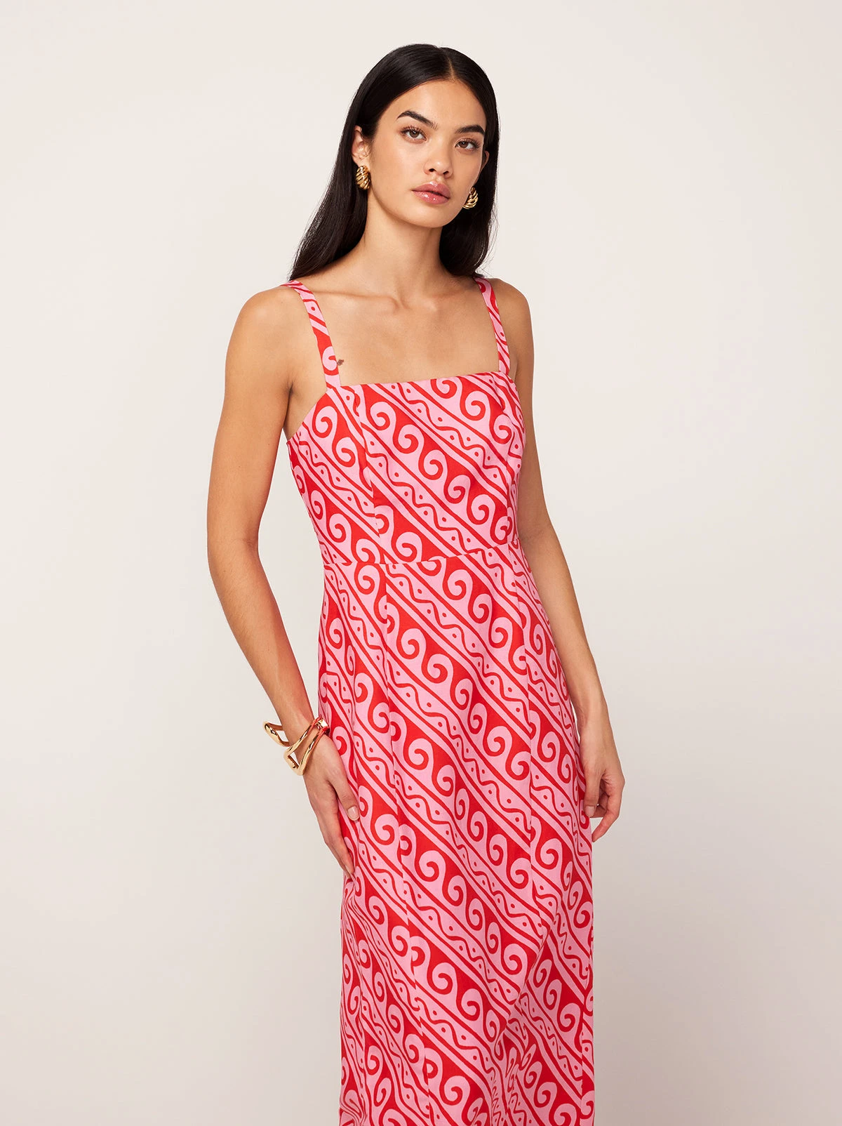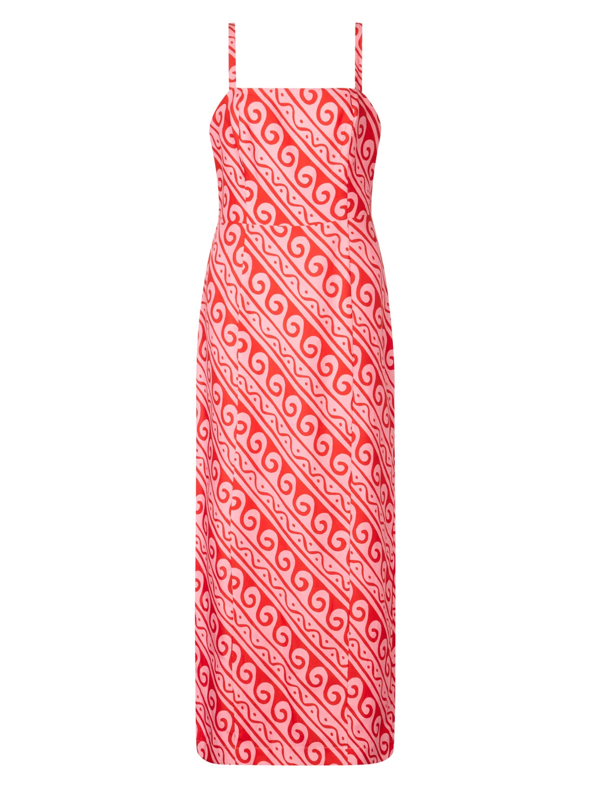 Tickled pink. Ursula is a sleek ’90s-inspired column dress in our new Pink Wave print (and #KITRIgirls favourite colour combination, red & pink). With her flattering fit, slim straps and back split, prepare for more than a few glances.