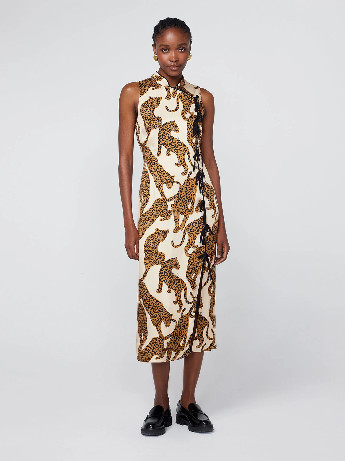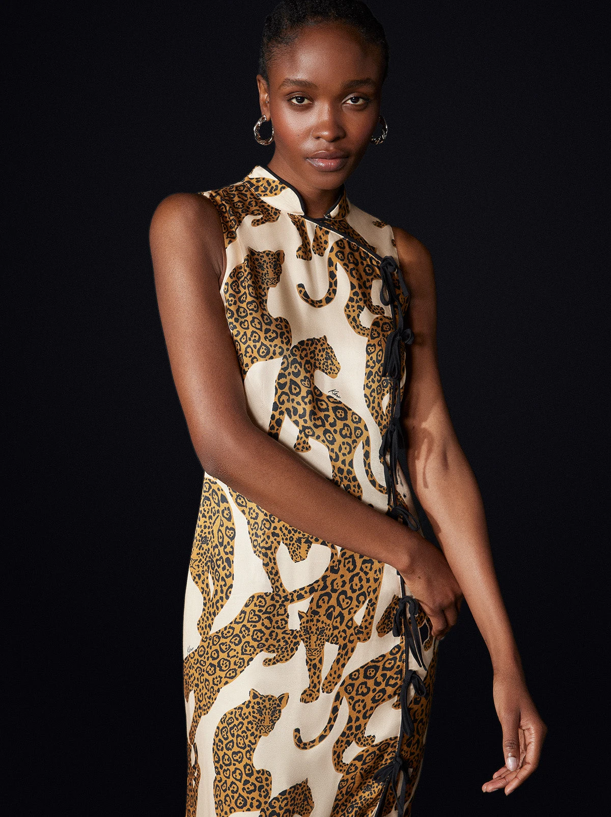 Easy elegance. Virginia’s slim midi-length skirt, Cheongsam-inspired neckline and tie details make her the ideal dress for every event in your calendar. Take a walk on the wild side with our hand-designed Leopards print. Just say it’s vintage.