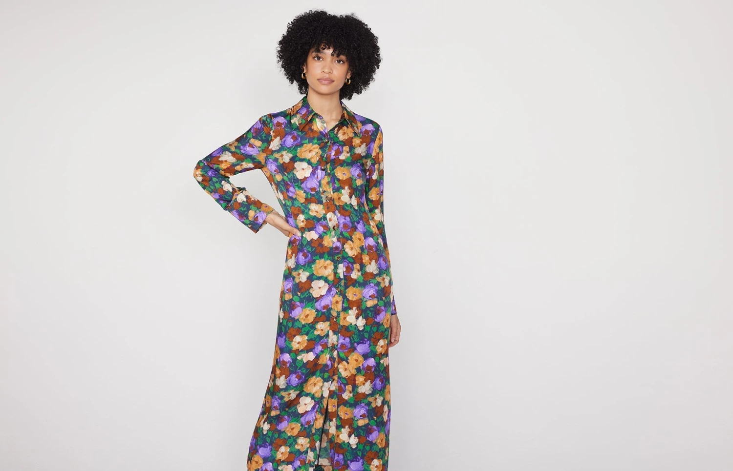 Wanda Iris Impressionist Floral Shirt Dress